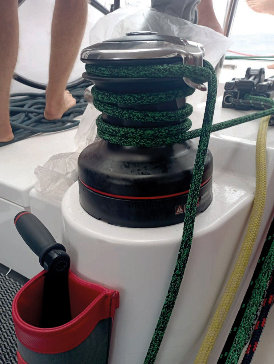 Early morning gybe: heading west! There’s a big bird to catch! After a night where Bigbird has managed to reduce the gap while we were looking for wind farther the south, we’re back at 8-10 kts and gradually gaining ground. The winches are electric, but we’re using them manually to save electricity.