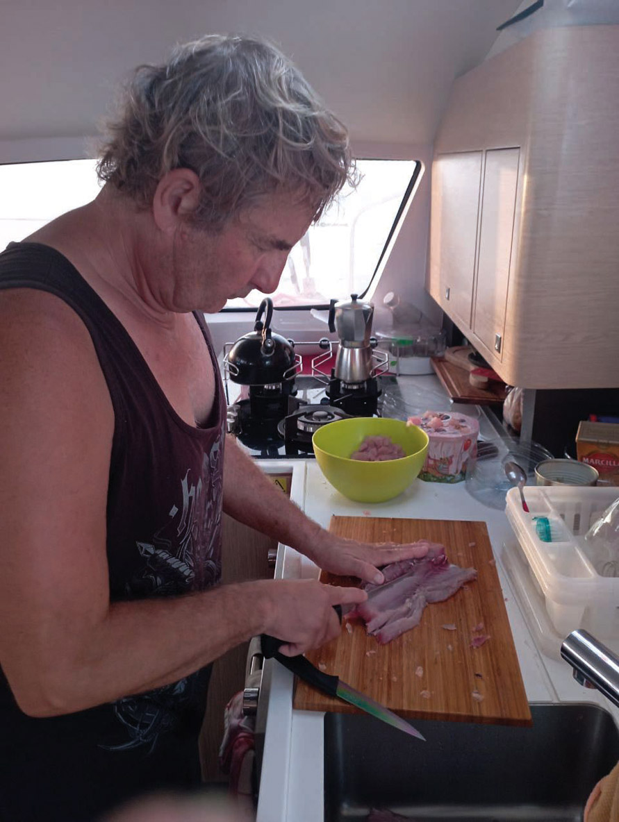 Perfect watches in T-shirt - Star gazing: The Southern Cross and Big Dipper with Orion appearing to blend into the celestial landscape. 8 knots average speed in 15 knots of wind. It is time to go to bed after this dream day, especially since tonight, it was the Captain’s mahi-mahi tataki!