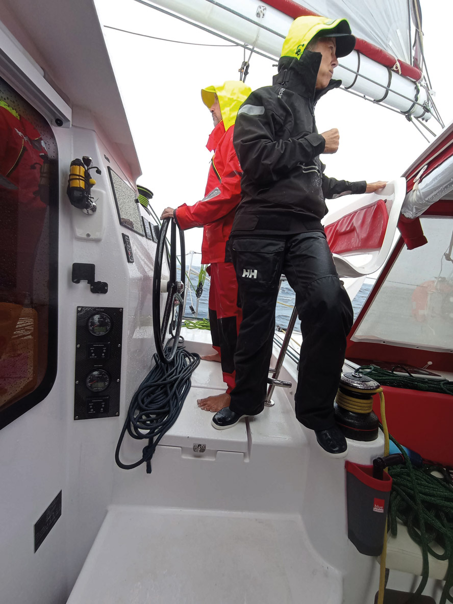 Currently second behind the NEEL 47, it seems that we are going faster. However, we’re switching tack while she is still going straight ahead. When we are on course, we’re gaining on her nicely. Then she leaves us behind when we are on the wrong tack. The weather forecast could be more favorable to us. We’ll keep watching it…