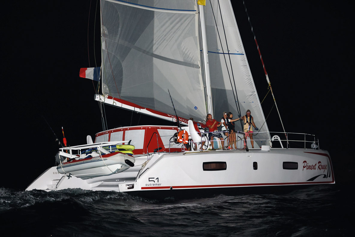 At 11:10 pm and 23 seconds, Piment Rouge was the first across the finish line in Grenada after 302 hours and 39 minutes of sailing, having covered 2,509 nautical miles on this second leg over a course with a theoretical distance of 2,280 miles. A nice run to the south and then more on the wind for the final 5-day sprint allowed us to catch up and overhaul Bigbird. Now, we’re just waiting for the engine hours declarations to come in, before finding out the rankings for this leg and then the overall results...