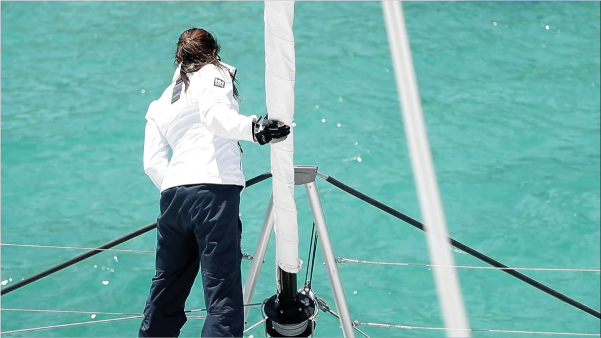 When leaving, slowly approach the anchor until you’re right above it. Never use the windlass to haul in the multihull. This will cause unnecessary force on the windlass and scrape the bottom. Stop the boat and pull the anchor up to the windlass on the bow roller.