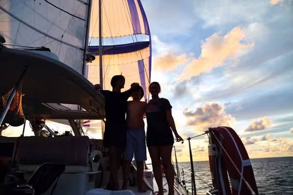 We logged 2,115 nm to be precise, roughly the same as our Atlantic crossing. It certainly wasn’t a boring trip. Every day brought its challenges, whether it was a broken generator, fuel pump failure, or crossing the busy shipping lanes, with gigantic tankers speeding past us in both directions, or when dealing with the Sri Lankan fishermen who wanted to trade fish for cigarettes and alcohol. We were rewarded with the most amazing sunsets and sunrises and we were in awe at the beauty and the vastness of the ocean and the sky all around us. We had dolphins visit us on several occasions and also had a little bird staying over for the night. We had pitch-black dark nights with rain and bad weather and approaching tankers and we had beautiful calm moonlit nights on a peaceful sea with the perfect breeze pushing us along. Exactly three weeks after leaving Singapore, we were very happy to drop anchor in The Maldives as we arrived in Male early in the morning. It still feels a bit unreal that we are here. Three years in Singapore was a long time and we can’t quite believe that we just sailed two thousand miles in one go. I’m happy to be part of the cruising community again and I have missed this lifestyle over the last three years. Arriving here in Male was an immediate reminder of how inclusive and supportive this community is when we met a Belgian couple onboard another catamaran who had just arrived the day before and happily explained us the lay of the land. Later, we met a British solo sailor who had arrived a couple of weeks ago and who had had surgery upon arrival. The anchorage is a mixture of local charter yachts and round the world sailors, but everyone is equally friendly and chatty. We don’t plan to spend too much time here and as soon as we have some fresh supplies on board, we are out of here and you will be able to find us anchored in turquoise water, off a sandy island somewhere…