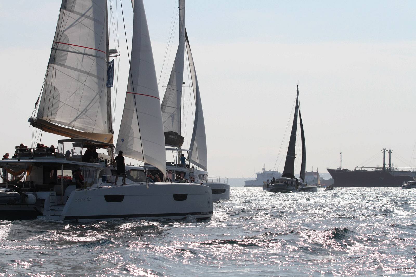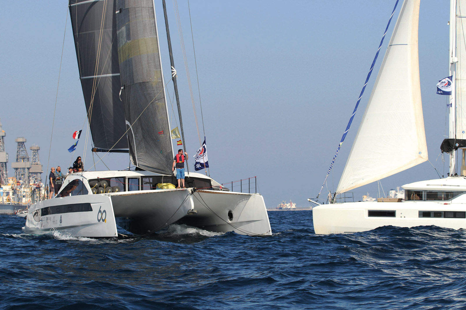 The 31 multihulls in the rally were the first to set off after the starting gun was fired, and as with the 110 monohulls following them, they had to tack to cross the line and were on a beat to reach the southern tip of the island of Gran Canaria. Unusually, a south-easterly wind of 10 to 15 knots had set in, as opposed to the typical north-easterly trade winds. The competitors were forecast to experience very light weather, most of them having victualled sufficiently to “maintain” themselves for 18 to 20 days on passage. Among the fleet of multihulls, we found former winners of the event such as the NEEL 47 Minimole, the TS42 Banza , and also the TS5 Guyader Saveol. It was the latter that was the first multihull across the line, just ahead of the Italian monohull Nacira, a 69-foot Vismara, followed by... Banza and Minimole! In class B, it was the Excess 11 Bombarda that outperformed all the others.