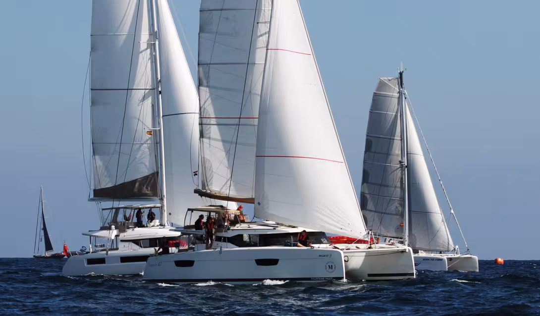 The starting line is oriented south-southeast, with the trade wind usually come out of the northeast... but for the 2021 edition, the multihulls were forced to tack to make their way around the island.