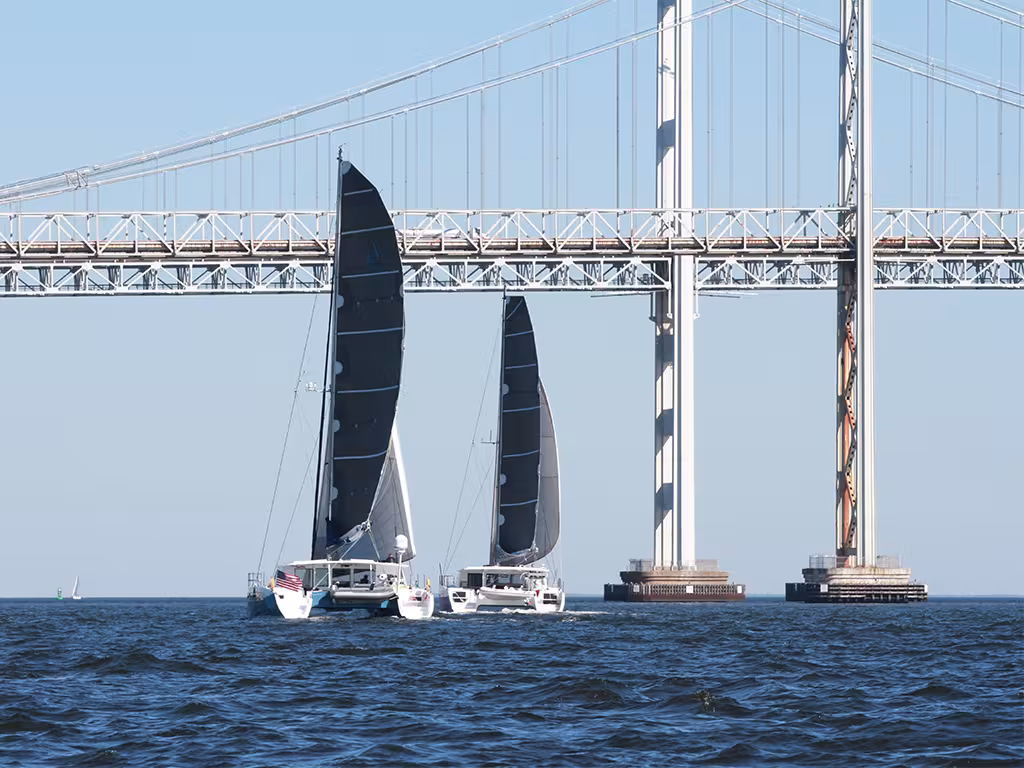 Then comes the after-show. Ignoring the logistical performance, in only one night, the show is already half dismantled... Americans sure know how to do this. For us, the most interesting part begins. The Chesapeake Bay is suddenly filled with sail, the dozens of marinas around the city all serve as starting points for boat tests. Journalists jump from one boat to another, sometimes with future clients. The ballet is set up, one day we cross paths with a catamaran we sailed the day before, or the one whose helm we’ll take the day after. The setting is ideal, protected by the “East side”, the strip of land separating the bay from the ocean, but still benefiting from a nice breeze and a practicable body of water.