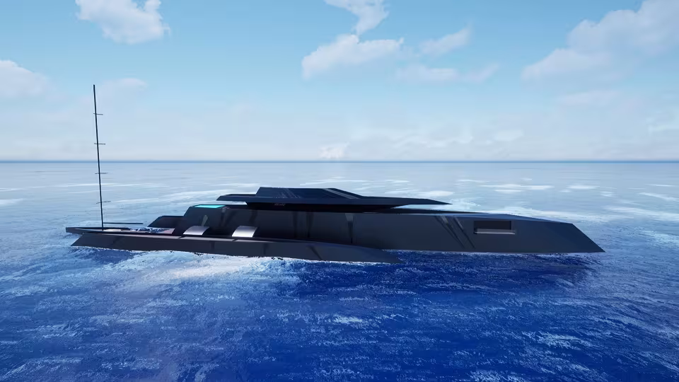 The trimaran configuration offers exceptional stability. In this large size, the amount of space between the hulls allows for the safe mooring of one or more tenders, or even a sailboat. The main hull of MY B0nd Girl offers all the amenities you would expect from a superyacht, including a large two-level owner's suite with Bond-inspired decor and a drop-down balcony. The two floats are designed to accommodate the crew quarters as well as the machinery rooms. The goal is to provide greater living space in the main hull and reduce the level of vibration and noise.
