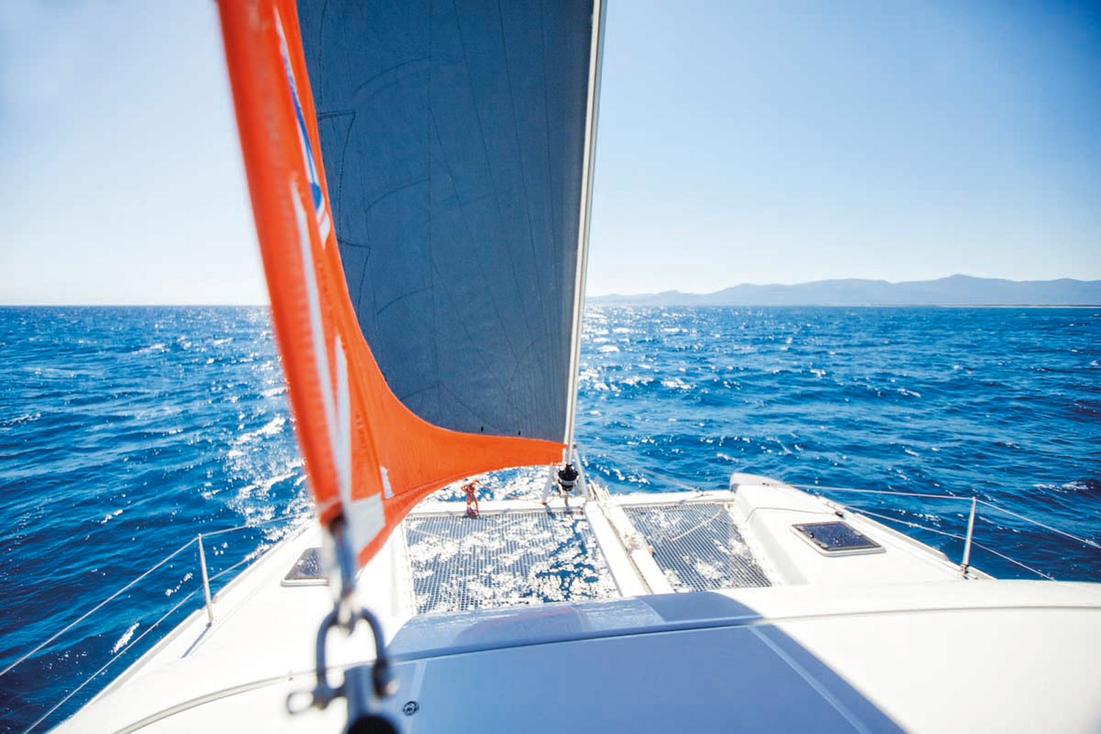 Marc clearly recognizes that the aerodynamic performance of a self-tacking jib is not necessarily optimal. The sail lacks overlap and sometimes surface area, especially along the foot, which inevitably penalizes performance. For him, it’s all a question of balance and consistency between the actual use in daily practice and the design, including the overall geometry of the sail plan: “It’s interesting to define what boaters are looking for in terms of performance and comfort when cruising. I’m looking at this without compromising the speed potential, which could be the case with a more forward-set rig that drastically reduces the sail area of a self-tacking jib. And the answer come naturally: ease of handling is a major factor in the choice of a type of rig, and anyone who has ever tacked with such a setup can only agree. The sail flogs much less when being furled. From the moment we chose to center the rig by moving the mast further aft on the Lagoon range, the foretriangle, now enlarged, became conducive to fitting a 95% jib on a self-tacking track. The longer foot gives a more open triangulation to the sail, making it less pointy at the head, and the sail keeps its shape better. The fact that the track is installed higher up, on the coachroof, shortens the leech and gives the sail a cut which also makes trimming easier. The other key point is also the advent of sails with greater overlap, such as the gennaker, which are just as easy to handle. These sails mitigate any possible deficit when you need to bear off. In most cases we’ve simulated, this setup appears to us to be amply satisfactory for use in cruising, and is the least restrictive possible for the crew, while maintaining an acceptable level of performance for this type of sailing and for the users”.