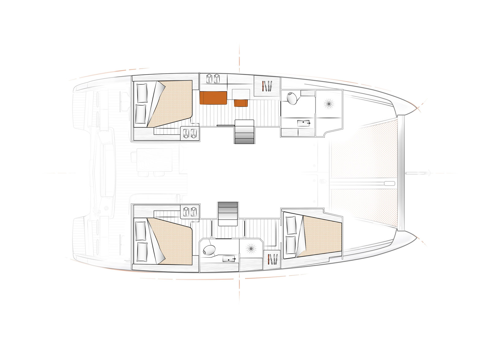 STANDARD - Forward cabin: new interior design. New door and cupboard handles.