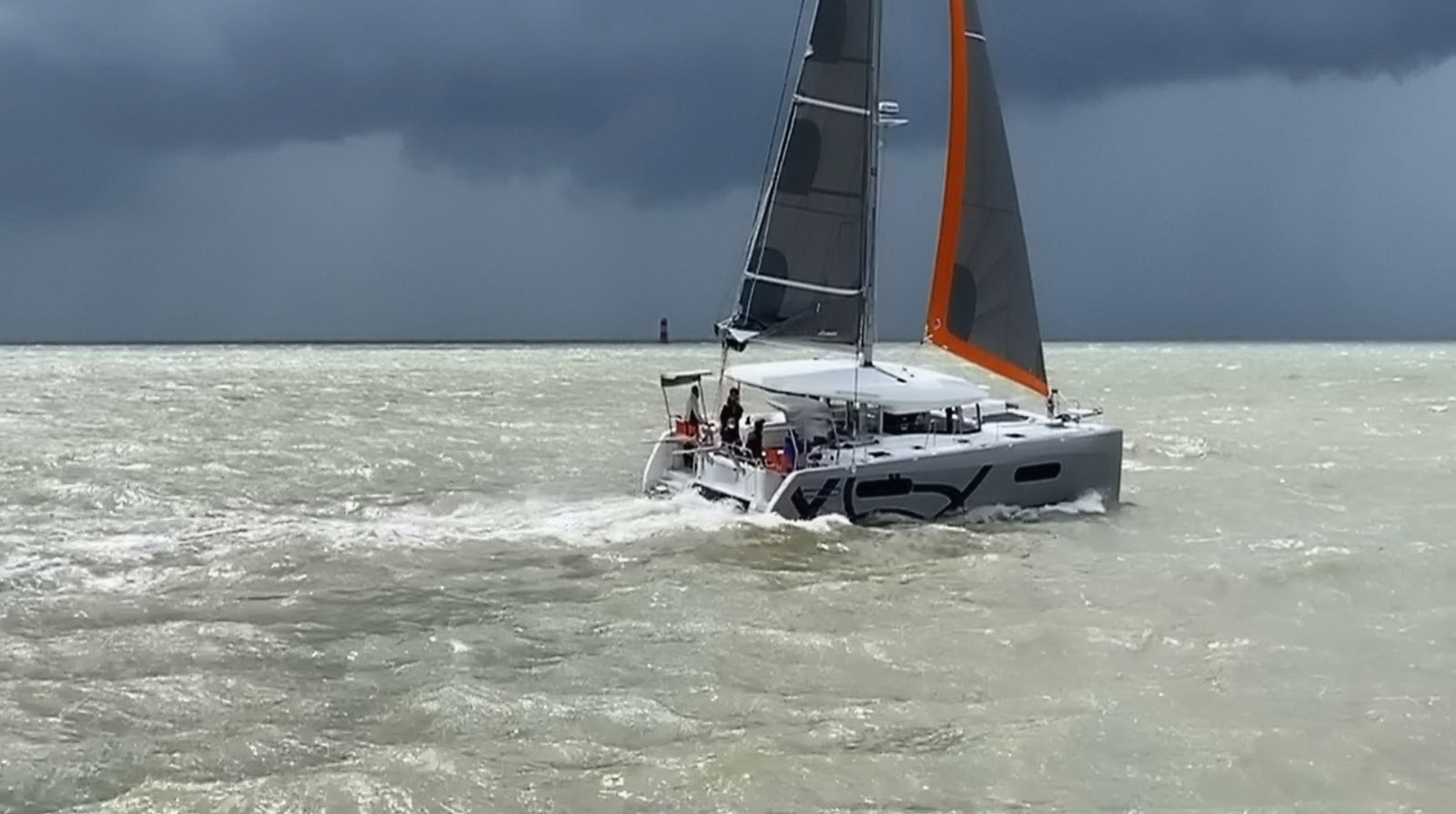 We were able to test the new generation Excess 12 in good breeze. The southwesterly wind was oscillating from 20 to 33 knots during our two trips out of La Rochelle. The short chop was a bit of a nuisance when we were tacking, generating a bit of pitching. On the other hand, downwind, these waves were great for surfing. The speed with one reef and 100% jib: 7 to 9 knots from close hauled (55° off the true wind) to a fine reach. With two reefs and 100% jib: 6.5 to 9 knots.