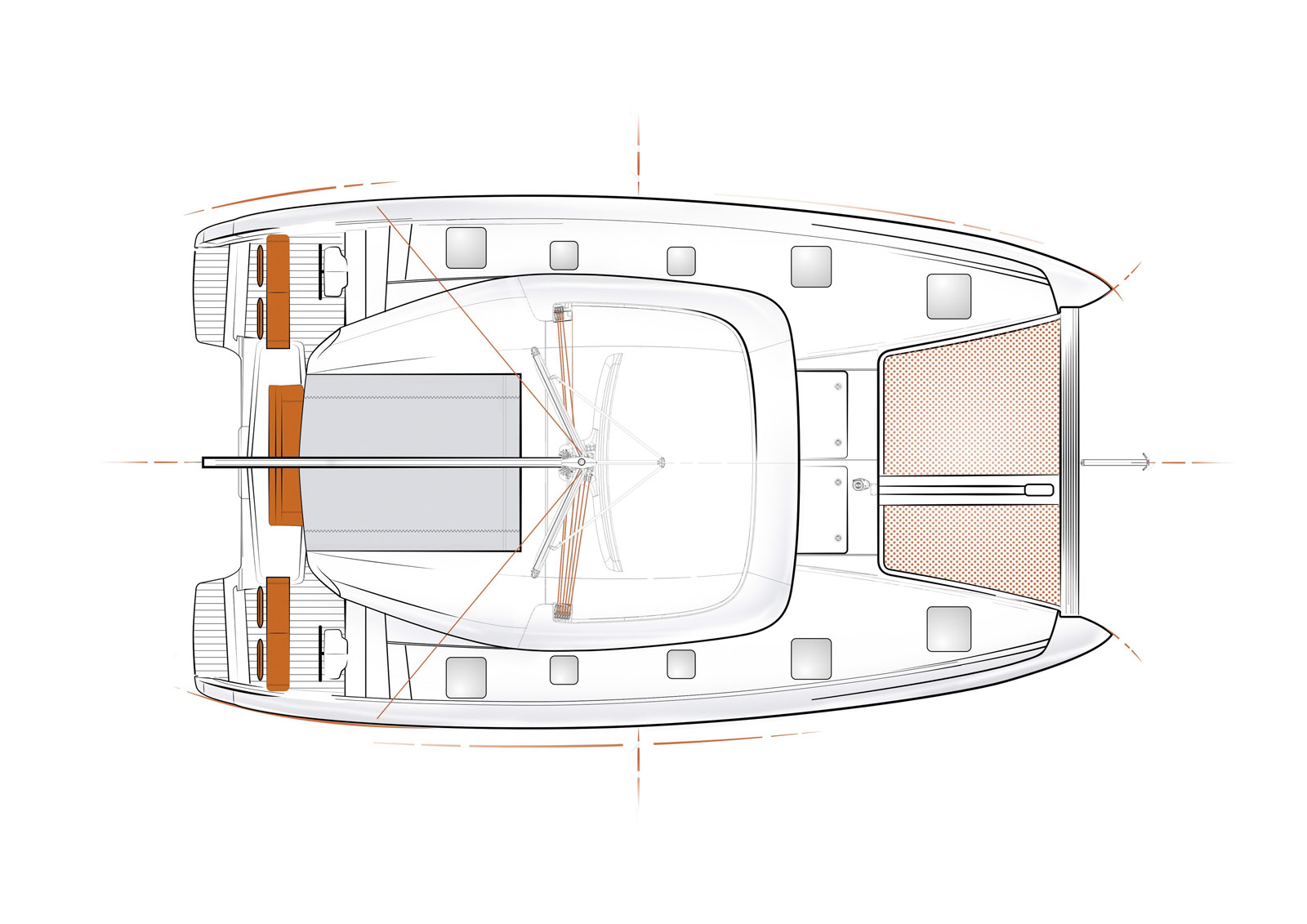 OPTION - Halyard bag with code 0/spi option on port side.