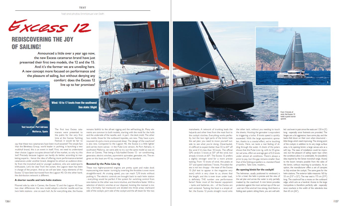 Almost two years ago at the Cannes show, we discovered the Excess 12 and 15, the first two catamarans from the new brand launched by Group Beneteau. With nearly 100 units built, the start wasn’t as good as expected, but the pace of orders seems to have accelerated significantly in recent months. Prices have been readjusted in relation to the Lagoon thanks to the options available. The manufacturer has taken advantage of the initial feedback from customers and its Excess Lab (see inset) to make significant improvements to the Excess 12. There’s no need to tell you again in detail about the seakeeping qualities and comfort of this model - we already tested it in 2019. However, a look at the proposed changes and improvements is certainly in order. About twenty innovations proposed as standard or as options, to make blue water cruising even better!