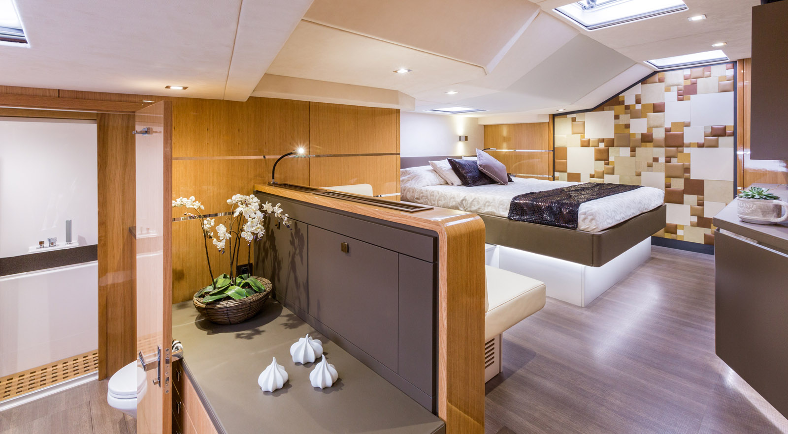Between the XXL Owner’s cabin of a Privilege Series 640 and that of an Outremer 45, the facilities are very different...