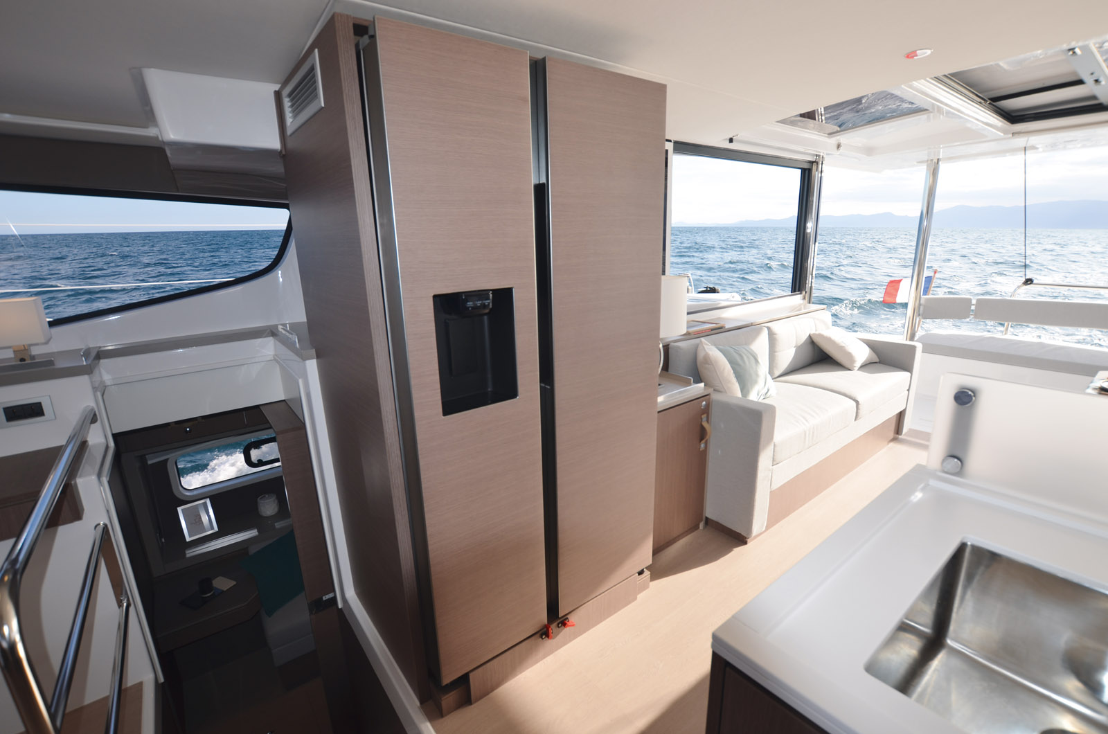 The Neel 47 is an interesting boat for a couple that sails together most of the time and occasionally receives family and/or friends. The layout of the hulls with an independent entrance maintains everyone’s privacy without upsetting the habits of the owners who have their cabin on the same level.