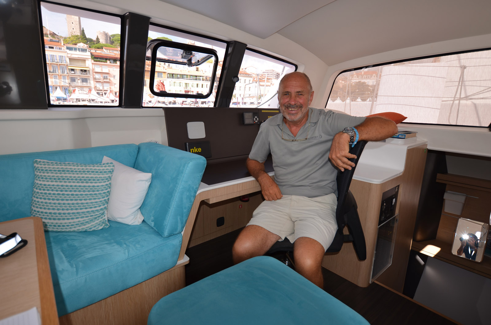 Others play the simplicitylightness card, like this flexible storage on the Eos 54 or the 100% synthetic fiber wardrobe on this owner’s Outremer 45. He’s smiling because he knows he’ll be the first to arrive on the other side of the ocean...