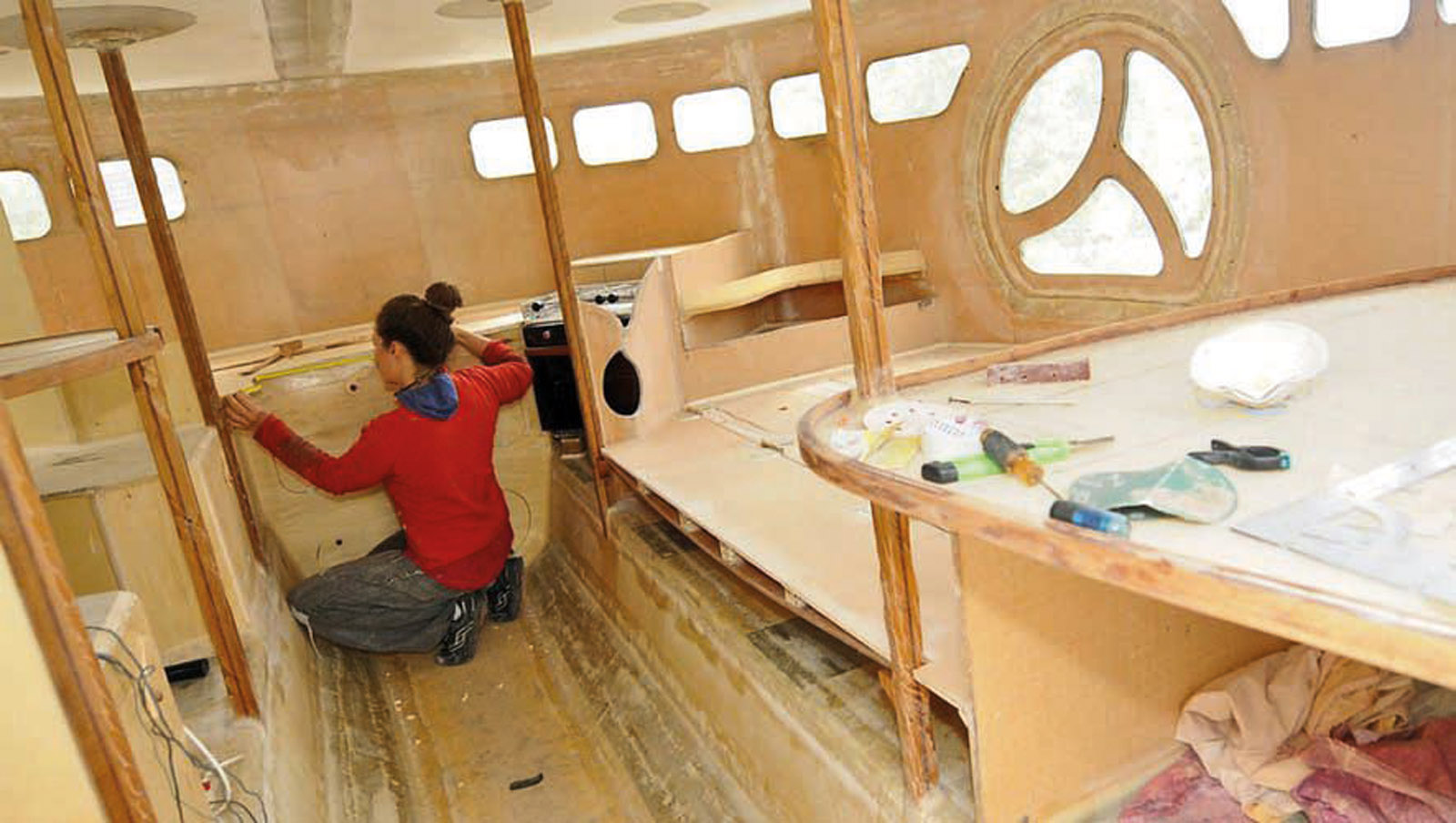 With its two hulls and a mast (that Anne would later sell), this kit sailboat enabled the trapeze artist to have access to a boat base for a small budget... but there was a lot of work to do in terms of the construction. Initially, the project took shape in the architect’s head: from these hulls, the objective was to create a platform from scratch, as well as a very light yurt nacelle (which would act as a cabin), a stage, but also an adapted sail plan. Denis was also interested in inventing a rig that could be used for both sailing and performing. This was not his first challenge and he always enjoyed unusual assignments. He had already participated, for example, in the Pianocéan project, whose piano schooner also served as a stage and studio, with its removable piano between the deck and the aft cabin. Anne wanted to learn and felt her dream taking shape when she saw Denis’ drawings. He studied the feasibility of the project, calculated, invented, drew, hesitated and advised. He gave her access to an incredible space which was his former workshop in Balaruc. And Anne? She did the rest: the laminating, cutting, fairing, sanding, welding, mechanics, gluing, assembling, resanding, painting, electrics... etc. At the beginning of the project, the circus artist launched a campaign on the internet to raise funds. She managed to collect € 7,869, which of course would not be enough to finance the whole project, but which would represent a precious springboard for the young woman. The amount of work involved was enormous. Thanks to the advice and the help, Anne learned on the job, and built her catamaran herself. The downside? Neither Denis nor she had thought it would take so long. Five years of construction - as sailor/builders know - requires a solid character to fall back on. Fortunately, the trapeze artist is a fighter.
