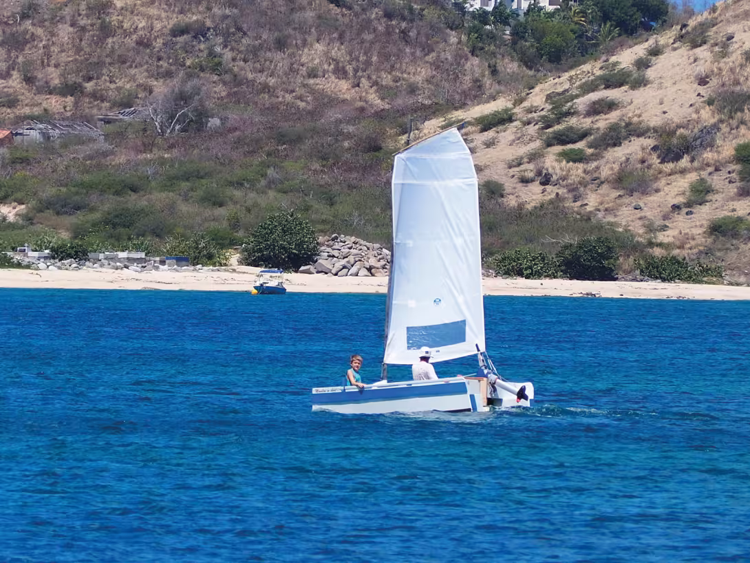 It’s a real pain having a motor that doesn’t work anymore. Especially since our daughter is coming tonight. Fortunately, we have acquired, following a previous failure, a modest two-stroke engine. This rustic machine, as backfiring as it is polluting, has been sitting in a locker for almost two years. Now it’s time for its revenge. This beast has never had the honor of driving our super catamaran dinghy, so some adjustments were necessary. Put, put, put, the noisy Japanese machine pushes the dinghy into the dock. I hurriedly put the anti-theft cable in place. As soon as I had locked it and climbed onto the dock, a kind of psychedelic flash hit me and I got a numb feeling: «I forgot the key»! We had planned dinner at a restaurant. Galvanized by the situation, I cut the cable myself, after only fifteen minutes of hysterical sawing, thanks to my wonderful Swiss Army knife. The dinghy was freed. Now it was time for hugs, reunions and happy laughter. Nothing much can happen to us anymore. We enjoyed our dinner in a good mood. On the way back, we were tempted by a small typically West Indian «lolo». A small glass of old rum, tasted under the parasols, with the sound of good local musicians as a backdrop, rounded off the evening perfectly. The girls were walking ahead of me, and suddenly Malou’s voice pierced the night: «They’ve stolen our engine!» She has been known to fool around in the past, especially when in the company of her partner in crime, who is also a bit of a joker. Fortunately, the oars had not been stolen. Our daughter, who is always able to find the right words concluded: «But Dad, this is a real opportunity for you. You never liked that engine.” My own conclusion was pinched from my favorite poet, Georges Brassens: «Rise up, my friend, may my good fortune benefit you! And don’t think about coming back. The merest hint of a return would undo the charm. I beg of you to leave me with a good memory.»