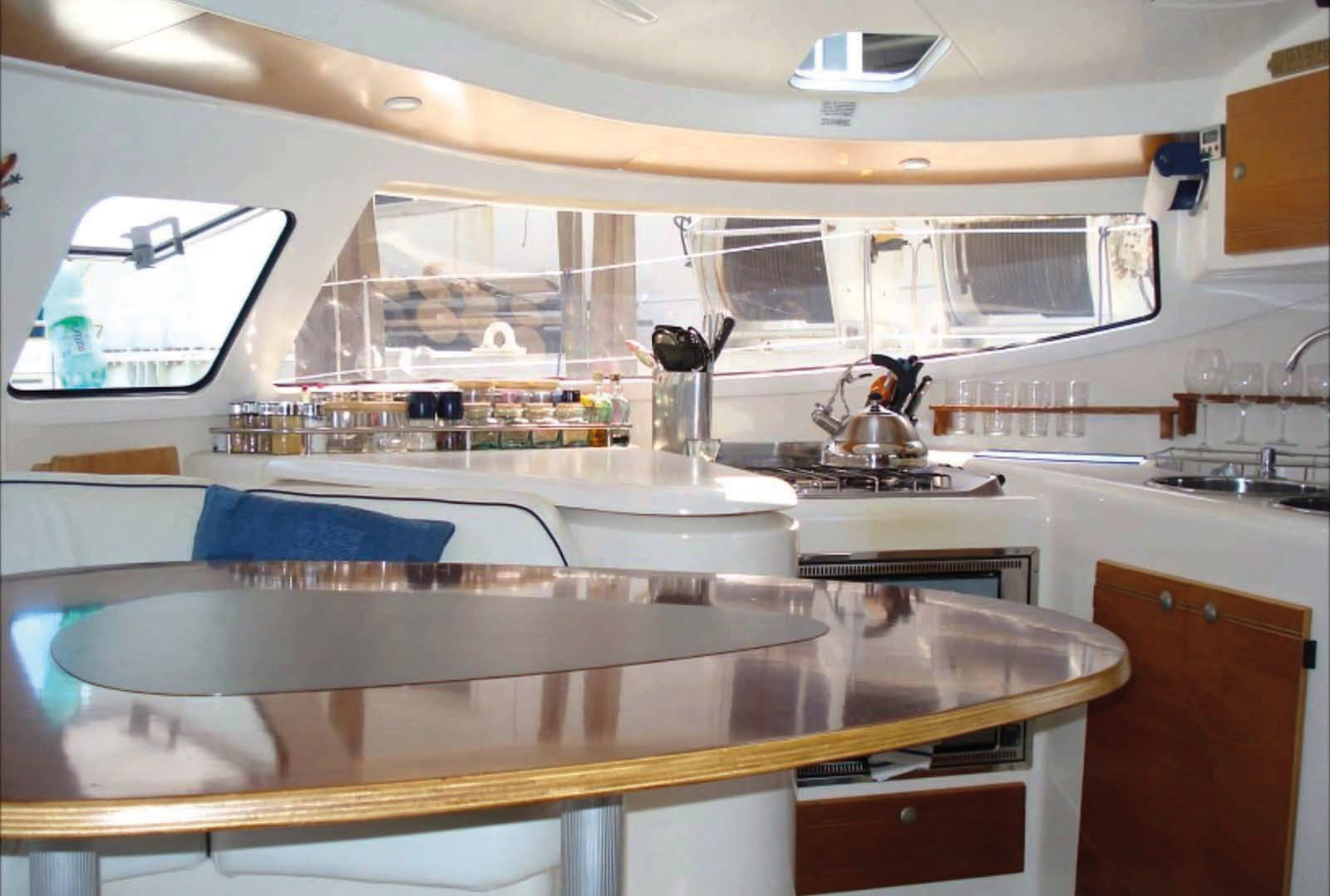 The plus: good resale value, strong and rather well finished catamaran, large sleeping capacity