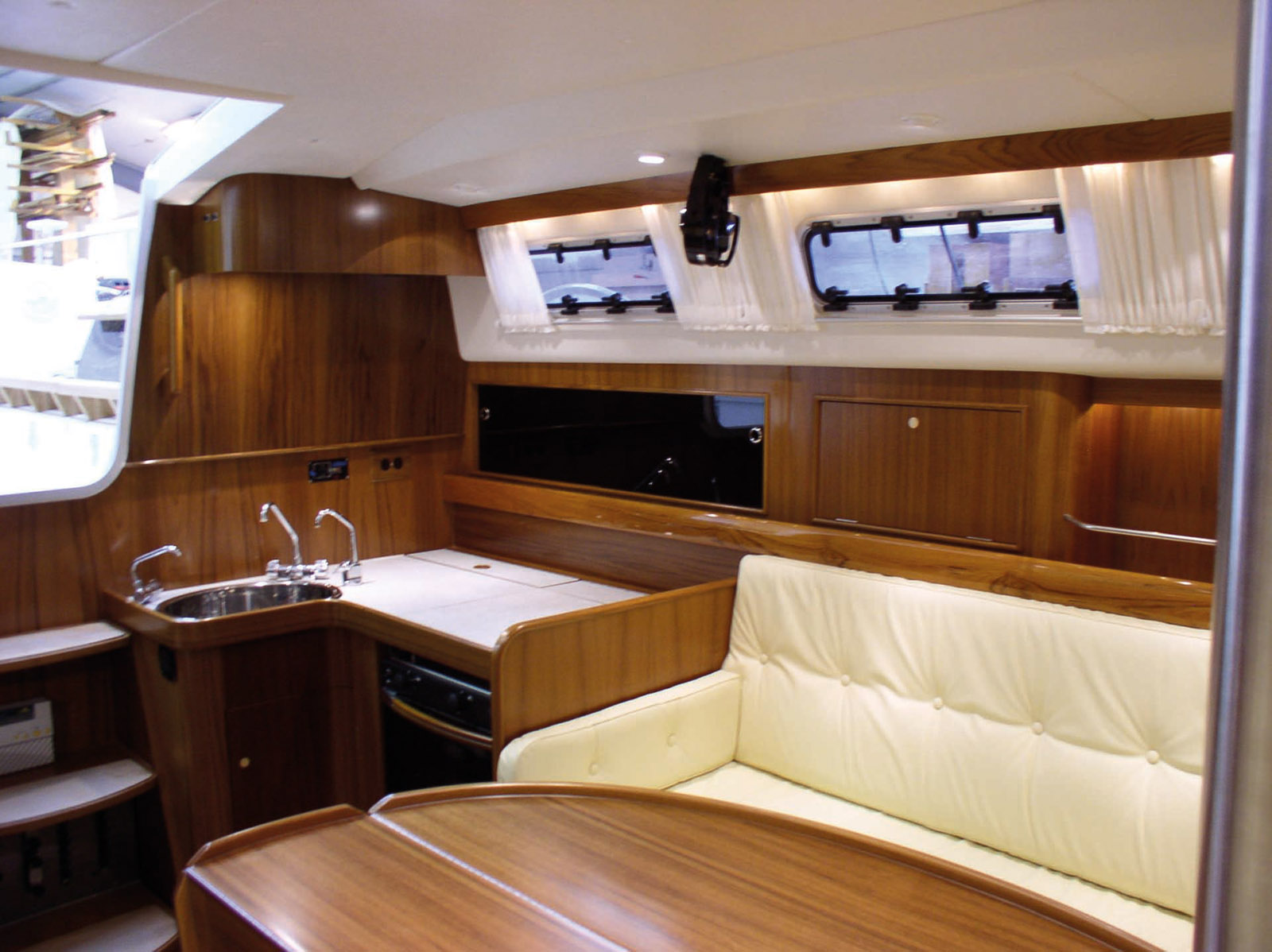 The minus: saloon glazing very exposed to the sun, access to the coachroof, cockpit/deck passage