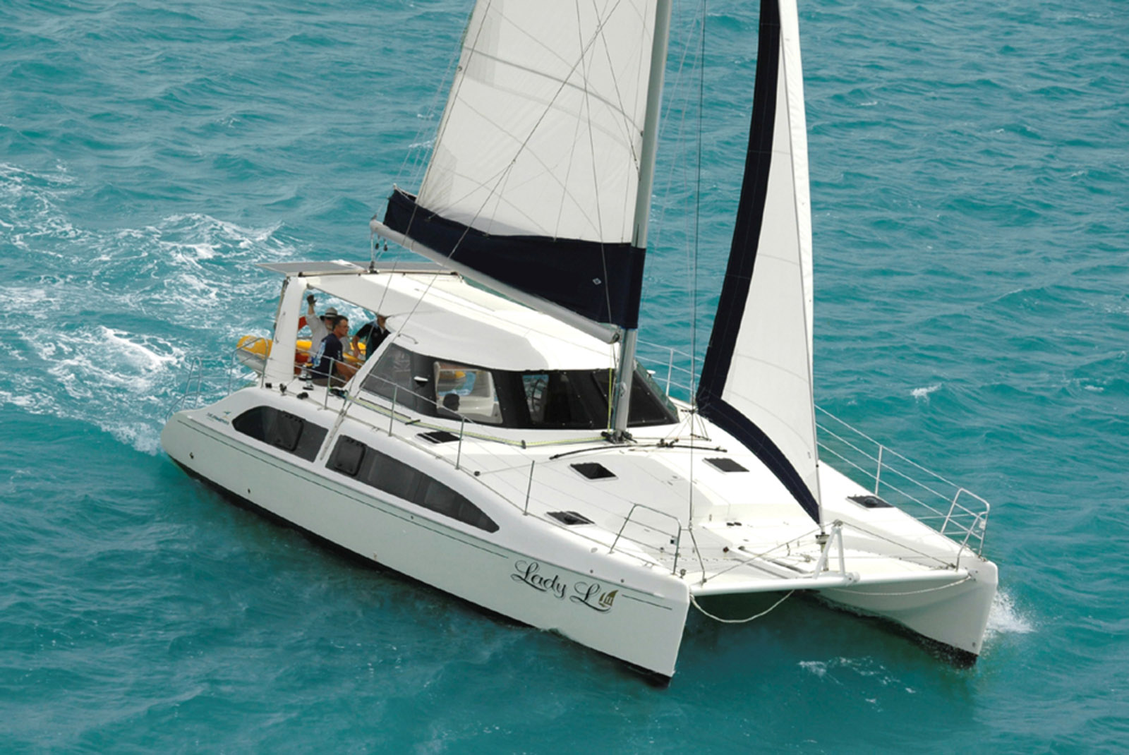 The plus : a very practical catamaran for its size, good performance, and a very pleasant nacelle to live in.