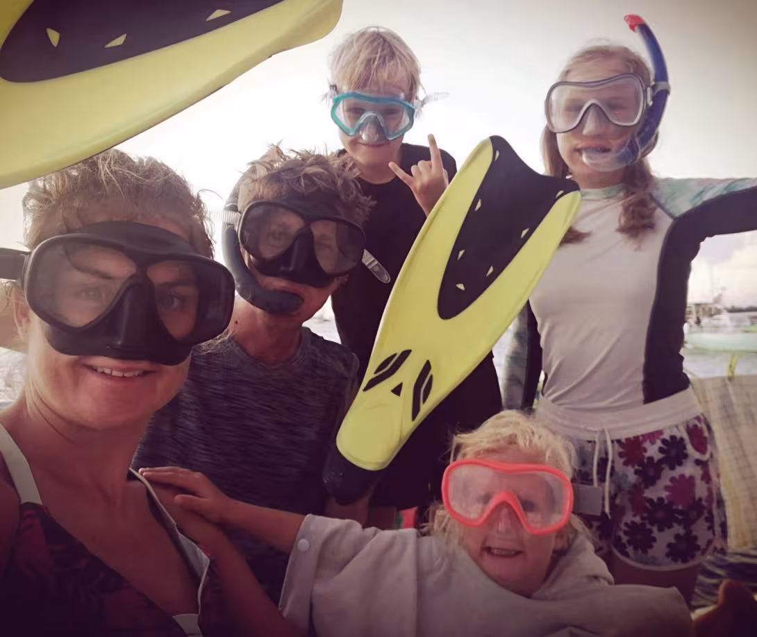 The homemade salted butterscotch that we prepared on the boat. The coffee from Cape Verde too, freshly ground in the morning in the grandmother’s mill. And the gentle noises of the night on a flat stretch of water, in the middle of a bay illuminated by thousands of stars. I also remember the yoga or meditation sessions alone at sunrise, a time of absolute happiness for me. There was the conversation with Lara during a night watch when we gave her the choice of doing the transat with us or not. When Lily started to swim and dive independently, with disconcerting ease, or when Lara mastered kite surfing and was almost better than me! If I had to offer some advice, I would say that if you want to do it and you persevere, you can do it. You have to work on it. With hindsight, we would have managed the schooling differently. There’s no point trying to reproduce school routines. Rather, look for an alternative path, listen to the children and let them find their rhythm. Let yourself be surprised. We wasted so much precious time before we really discovered it, and afterwards everything was so much simpler. And I could enjoy the sunsets on the coachroof even more. Already, I miss having no salt on my skin, the sunrise yoga, swimming without a bathing suit, and having the time to take my time.