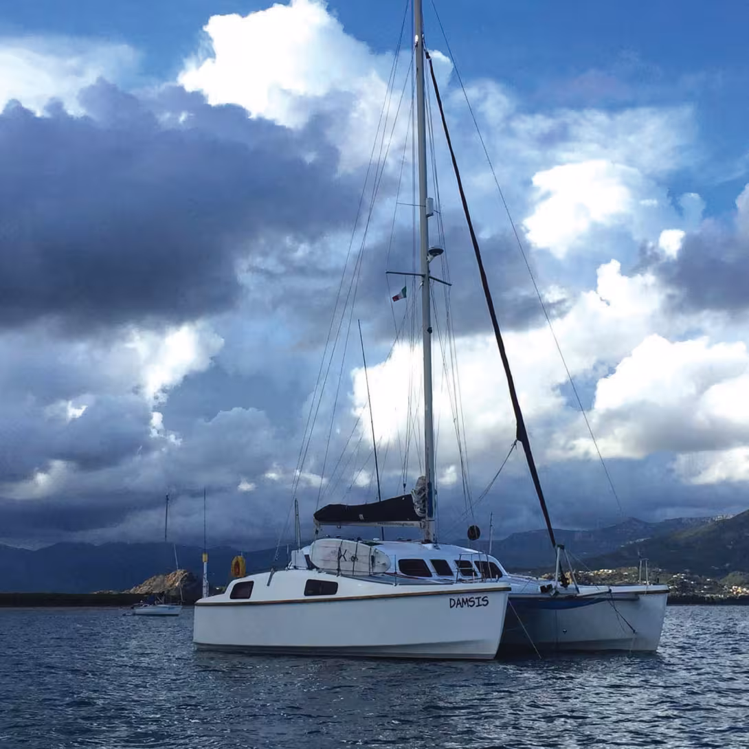 After a 2-day journey from the Balearics, we arrived in Italy! We had bid a fond farewell to Port Addaya in Menorca, lifting the anchor half an hour earlier than planned which turned out to be a good thing because it took us half an hour to rinse the mud from it when we put it away. We watched the sun as it set behind the headland as we motored clear of the shore, and then hoisted the main and the genoa and started sailing East. We had decided to go earlier than our friends as we had seen the forecast for the Mistral and wanted to make sure that we wouldn’t have to battle high wind and waves on the last part of our journey. It was the right decision, but winds were light to non-existent for most of the trip, so we motored at 5 knots. It was flat, boring and hot. In the early hours of Sunday morning, the wind slowly filled. A few hours later we were sailing and able to switch the engine off - the peace! As Sardinia came into sight, the wind picked up and, we were bowling along on a very broad reach with the Mistral snapping at our heels. We sailed up to the anchorage outside of Sant Antioco harbor which was very overgrown, and it took several attempts in 25 knots to get the anchor hooked in. We stayed there until the Mistral blew through and then continued exploring Sardinia’s south and east coasts. The town of Pula, with its ancient ruins on the shore, is beautiful