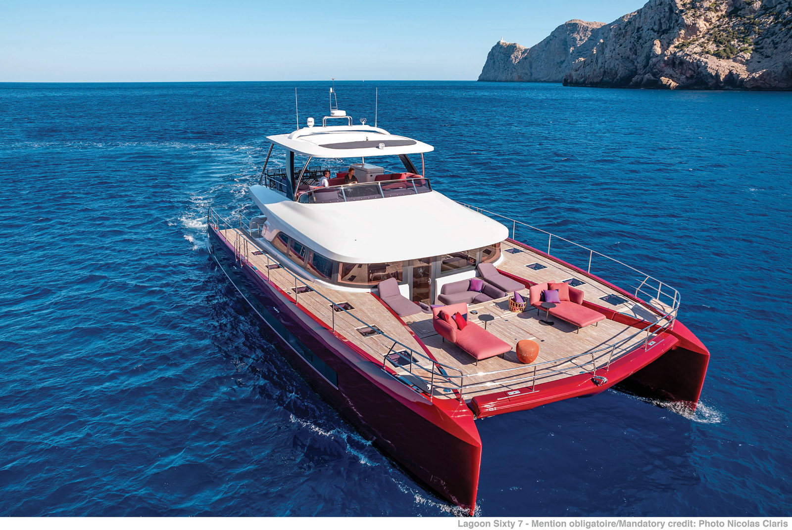 Modern multihulls and their large and numerous lounging areas are offering more and more upholstery - here on the Lagoon SIXTY 5.