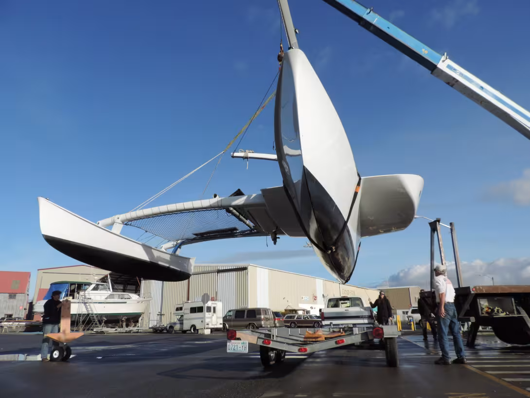 Ahead of its bows, the Statue of Liberty will mark the starting point, with no less than 13,225 nautical miles to cover non-stop to reach San Francisco - via Cape Horn, just to spice up the challenge. This record is a first: the objective is to reach the goal without stopping! At first glance, the project may sound somewhat suicidal... but in fact, Ryan's proa has already made a round trip from the United States to New Zealand and is well prepared, with features such fiber standing rigging, and furlers from Colligo Marine. As for photos, we shouldn't be disappointed: Montreal-based Sailor Productions will be capturing images from this 60-day journey to produce a one-hour documentary, 2Oceans1Rock.