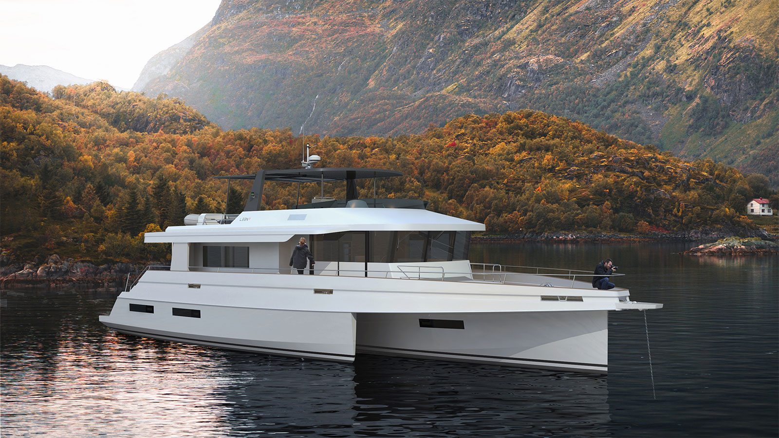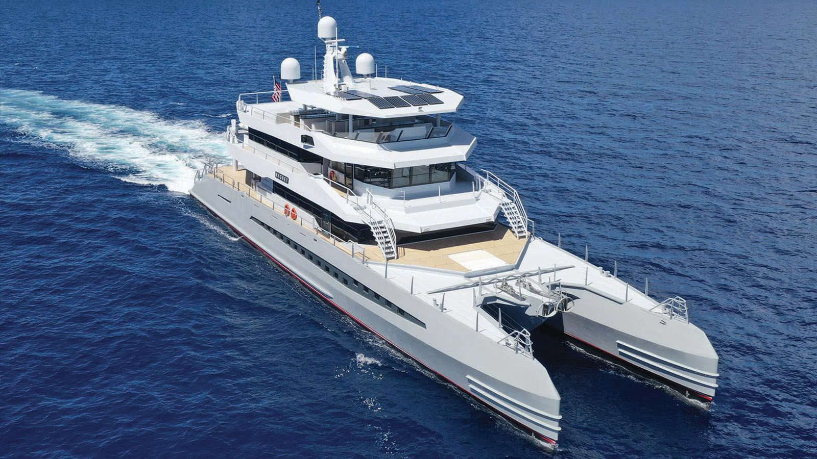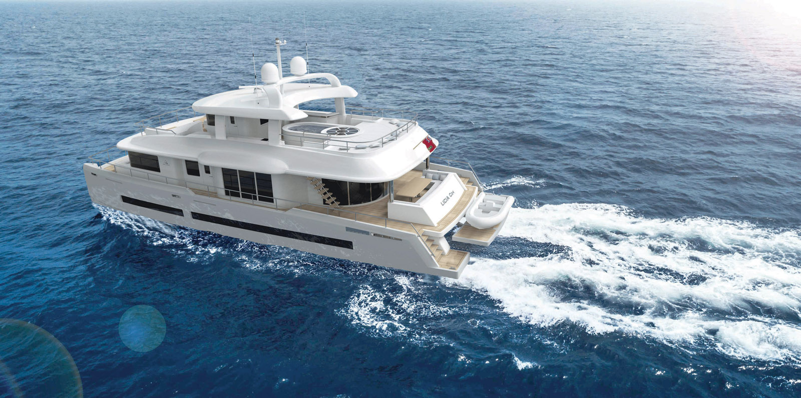 This new brand, founded in 2018 by Jack Wijnants, offers a three-deck aluminum catamaran using top quality materials for manufacture and finishing. Dr. Albert Nazarov’s design provides for long-distance cruising, in all conditions, with sufficient stowage space and fuel for a family and crew to stay at sea for several weeks at a time. Cruising speed is announced at 11 knots, with 18 knots as top speed.