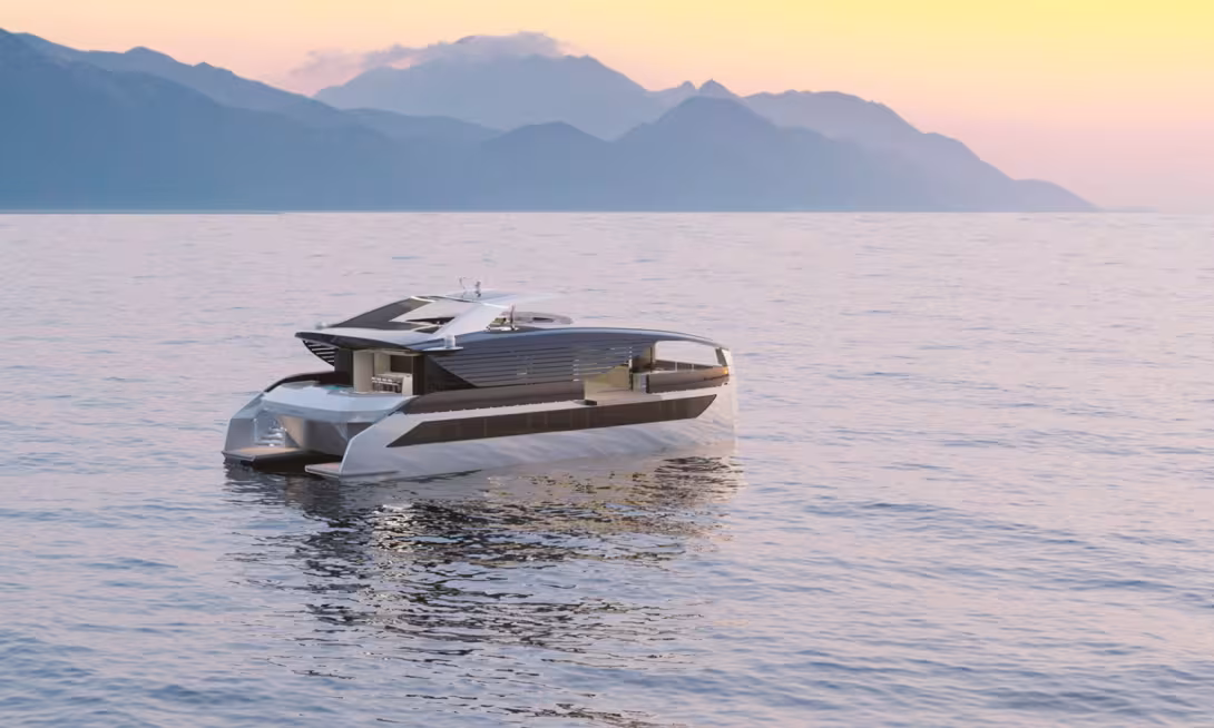 Solar Impact has presented an ambitious multiyacht project whose bimini completely covers the main deck in order to optimize the surface area available for solar panels. Designed by Tommaso Spadolini (Roland Friedberger’s design), the CAT-80 could soon be built in Germany. The chosen material is aluminum. This multiyacht adopts a futuristic design, in perfect harmony with its 100% electric powertrain