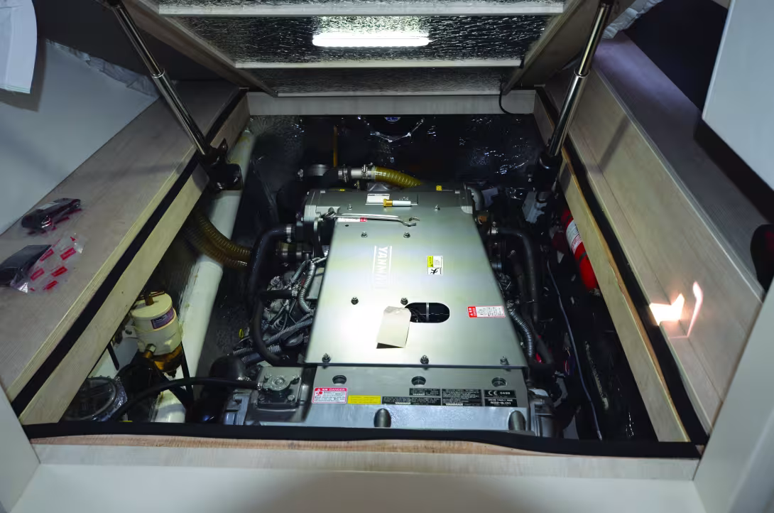 On a motor catamaran, an engine overhaul is not something to be taken lightly. Poor maintenance can ruin your vacation - always at the worst possible moment, of course... Not to mention that if significant repairs are required, these won’t be covered by the warranty if you haven’t followed the maintenance recommendations. Also, bear in mind that we’re dealing with a different ballgame here aboard a powercat compared to the modest powertrain found on sailing catamaran of the same size: 2 x 280 to 370 HP for 40 to 50 feet powercats versus 2 x 30 to 55 HP for sailing boats. If you’ve got to replace a powercat engine, that’s a very expensive operation: € 32,000 excluding tax for one of the Yanmar 8LV – 320s presented in this article, € 7,000 to € 8,000 for installation and another € 5,000 for yard costs (craning, chocking, storage ashore etc.) as opposed to € 11,000 for a Yanmar 4JH45 - SD60 and € 2,500 to 3,000 for installation. And as for the installation, it is do-able on the Leopard 43 PC used here as an example thanks to conveniently positioned hatches ... but on board many powercats, a change of engine(s) will require holes to be cut in the deck or even in the hull! All the more reason to ensure regular maintenance is carried out. Manufacturers specify servicing schedules for periodic maintenance: followed to the letter, these will keep your engines running for the life of your powercat. Let’s face it, these engines are very sturdy and can go through decades without a hitch if you pamper them. Every 250 hours, an engine and gearbox oil change, replacement of filters (oil, fuel, air), change of the raw water impeller and belts are recommended. Every 500 hours, a larger overhaul includes the replacement of all hoses, heat exchangers (air and water) and exhaust elbows. A standard service of our two Yanmar 320 HP Yanmar engines costs around €1,400 excluding tax - twice that of a pair of 45 HP sailboat motors. A major service will be charged at €3,000 excluding tax.