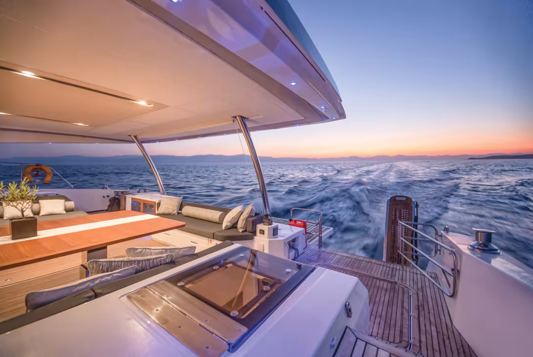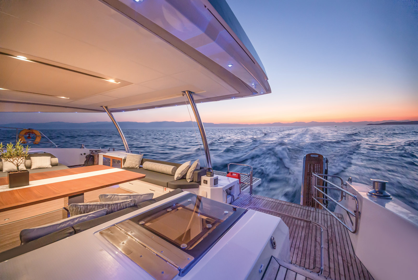“We set out from La Rochelle with a well-established northeasterly wind, averaging 25 to 35 knots with a sea that was building as we started to clear the shelter of the coast. The catamaran behaved wonderfully well, the autopilot managing the quartering seas without any worries. At low revs, we quickly reached a cruising speed of 9 knots to achieve derisory fuel consumption. We had set ourselves a goal of minimum 200 miles per day, but exceeded that easily. In under two days, the Bay of Biscay was behind us. The sun finally appeared, along with better temperatures. It was soon time to round Cape St. Vincent, southwest of Portugal and here you’re (almost) at the Strait of Gibraltar. We passed Tarifa, with 18 miles still to run before reaching the anchorage of La Linea and barely one hour of daylight left. This was the moment to take advantage of the twin 480 HP engines: they propelled us smoothly at 17-18 knots: we reached the anchorage at dusk