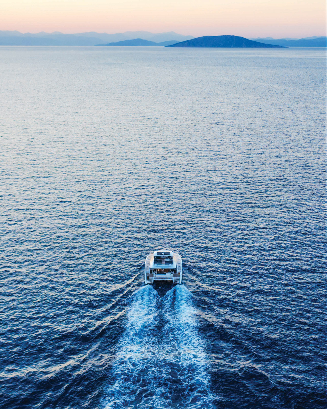 And once she’d arrived in Greece, manufacturer Fountaine Pajot organized a photo shoot of their new powercat: here’s the story of this delivery trip and exclusive pictures.