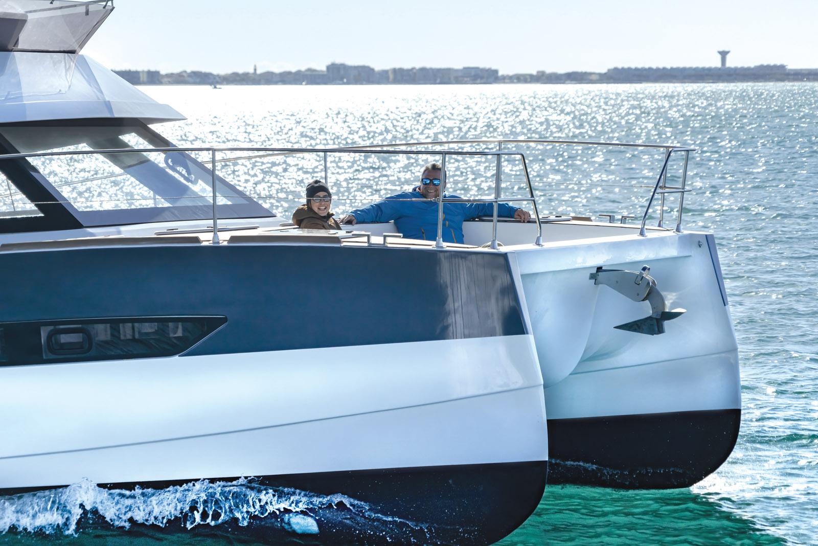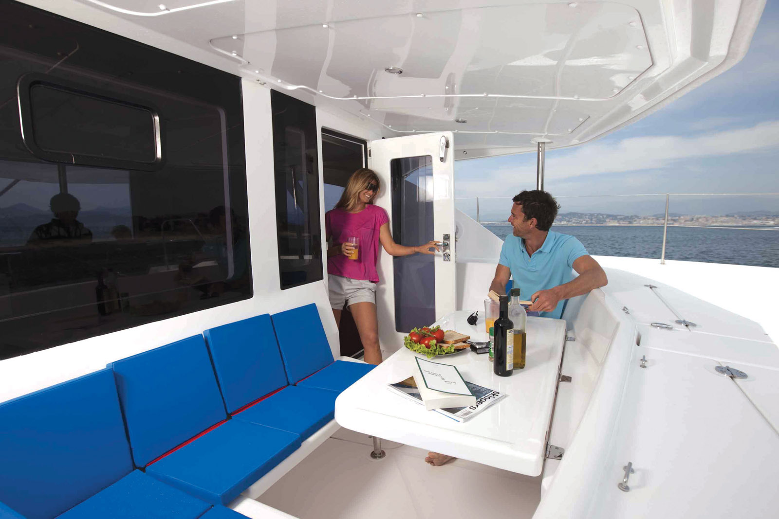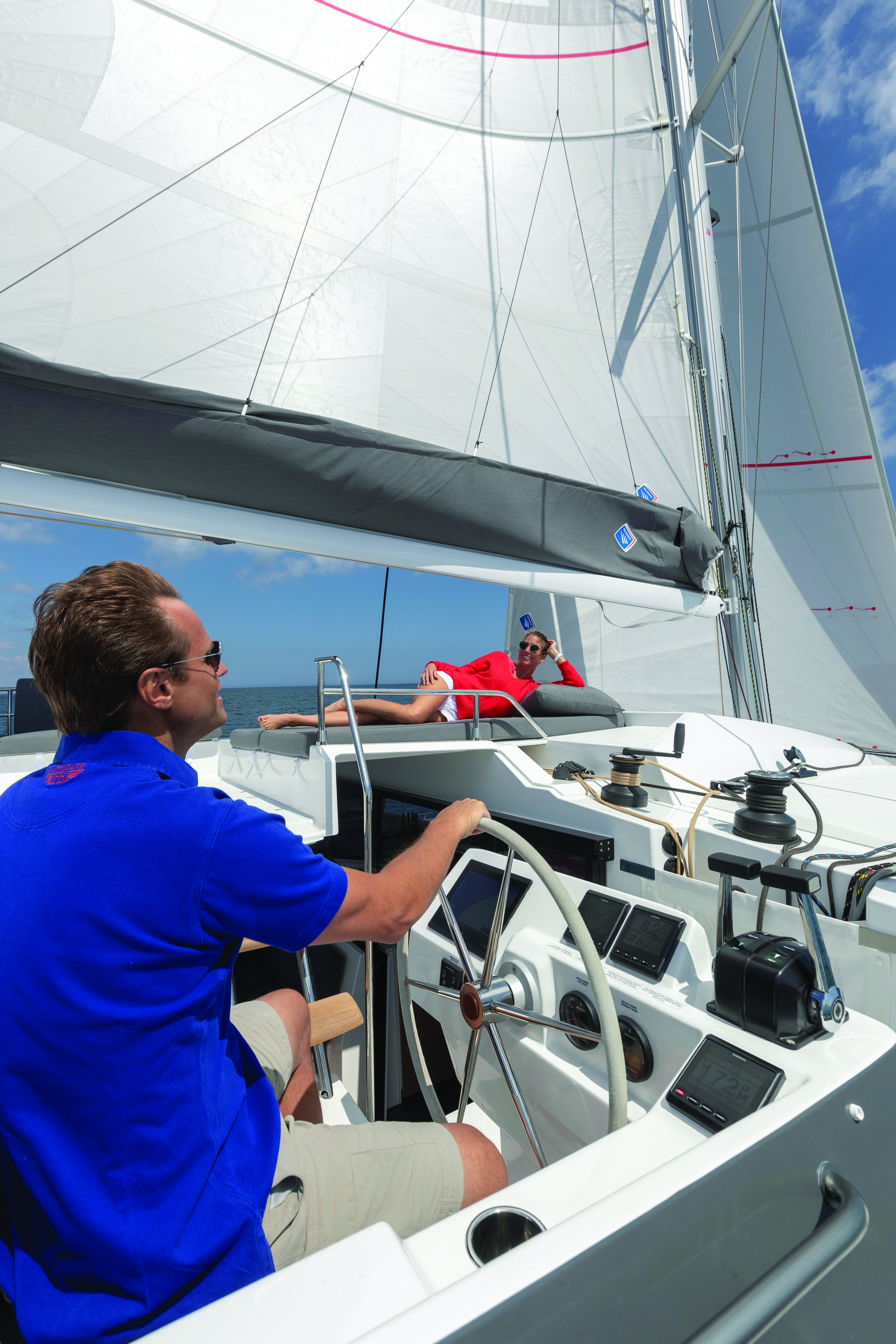 «The great revolution of the last twenty years lies in the emergence of high-performance IT and communication tools,» notes Olivier Racoupeau. The time and cost savings offered by computer software are essential but cannot avoid the multiplication of trials and tests. These simulations have been extended and now offer the manufacturer a much grea - ter range of possibilities, and therefore the possibility of choosing from a variety of options. The transmission of dematerialized files instead of plans, drawings and other calculation tables on paper is obviously much more ef - ficient and faster. Whether it is for the first drafts of the ge - neral design, for layout plans or technical diagrams, digital visuals make it possible to fine-tune the desired charac - teristics as precisely as pos - sible. For layouts, circulation plans are studied according to the movements around on board in all circumstances. Every inch counts when at - tempting to make a passage more fluid, to gain headroom or seat width. And as a re - sult of the tests carried out by these software programs, we can end up gaining a bathroom or even an extra cabin. Apart from improving the ergonomics and comfort, those few inches can end up making multihulls that seem much bigger to us! Simu - lation software tracks every little gesture from the galley to the bathroom and all the maneuvering sequences. So - metimes, this is not enough: a full-scale model allows us to validate a new concept. «Each phase of life on board is stu - died in detail,» explains Marc Van Peteghem. The aim is to find the most ergonomic plan that will not just contribute to safety but also to the general well-being on board depen - ding upon the program. And the heterogeneous range of multihulls on offer is proof of the multitude of situations that are taken into account.