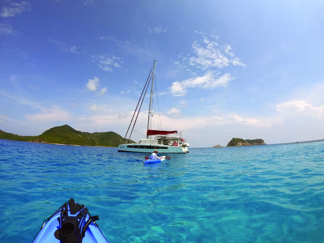 The rally, which is organized by the Malaysian Tourist Board, allows about thirty boats each year to visit the country’s coastline, heading from west to east with various planned stopovers. There are visits, welcomes, various meals with all the local folklore and much more. Of course, there is plenty of help given as far as paperwork is concerned with visas being looked after. We will sail from Langkawi, the first island to the south of Thailand, to Tawau, in the east of the country. We then leave Phuket and all of its facilities for an adventure. Kho Rock Noi and Nok are natural parks. The landscape is sublime, the water is turquoise, and the seabed full of corals and aquatic fauna and flora of all kinds. We have now arrived in Malaysia, on the island of Langkawi and its main city Kuah, the port of entry. The island is duty free which means that it’s a good chance to stock up. Here, we discover a multitude of walking possibilities, including a cable car climbing up to 700 meters (2,300’) altitude. It’s a welcome fresher moment compared to down at sea level. Then we set off again towards Singapore. The crossing is a little stressful. Countless cargo ships brush past you at more than 15 knots. We have to strictly follow a shipping channel that is about a hundred meters (330’) wide. The Singaporean police are watching. We then sail up the east coast of Malaysia to Seri Buat, where we stop for two days to see the small islands and the splendid seabed. In the middle of the night, the wind picked up, hitting more than 50 knots. The beautiful paradisiacal anchorage became hellish. Our multihull was pulled in every direction. We checked our anchor alarm: phew, we’re not dragging! We prepared the emergency anchor just in case and the engines were ready to go. The next day we set off again for Tioman Island. Wow! Paradise on earth does still exist and we’ve seen it in the Anambas, on Pulau Anak: turquoise water, seabeds full of multicolored corals in perfect condition. No trash on the beach... pure happiness.