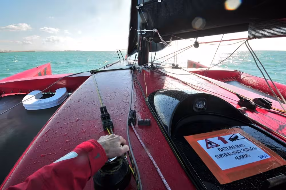 <p><span style="font-family: tahoma, arial, helvetica, sans-serif;">This little red muscle-car of a boat won me over on the pontoons at this year’s International Multihull Show at La Grande Motte in the South of France. Her assertive, sporty look hides a surprisingly cozy interior volume for a trimaran of this size. Under way, Eric Lerouge's skillful design, the superb construction and the high-performance sail-plan make her one of the most exciting multihulls of recent years. Fast in all weathers, the performance in a breeze is exceptional for a unit of less than 30 feet in length. Helming pleasure is absolute, the vertical thrust generated by the fixed foils gives this reasonably sized trimaran the safety of a larger multihull. An outstanding success in a world of usually much bigger boats.</span></p>