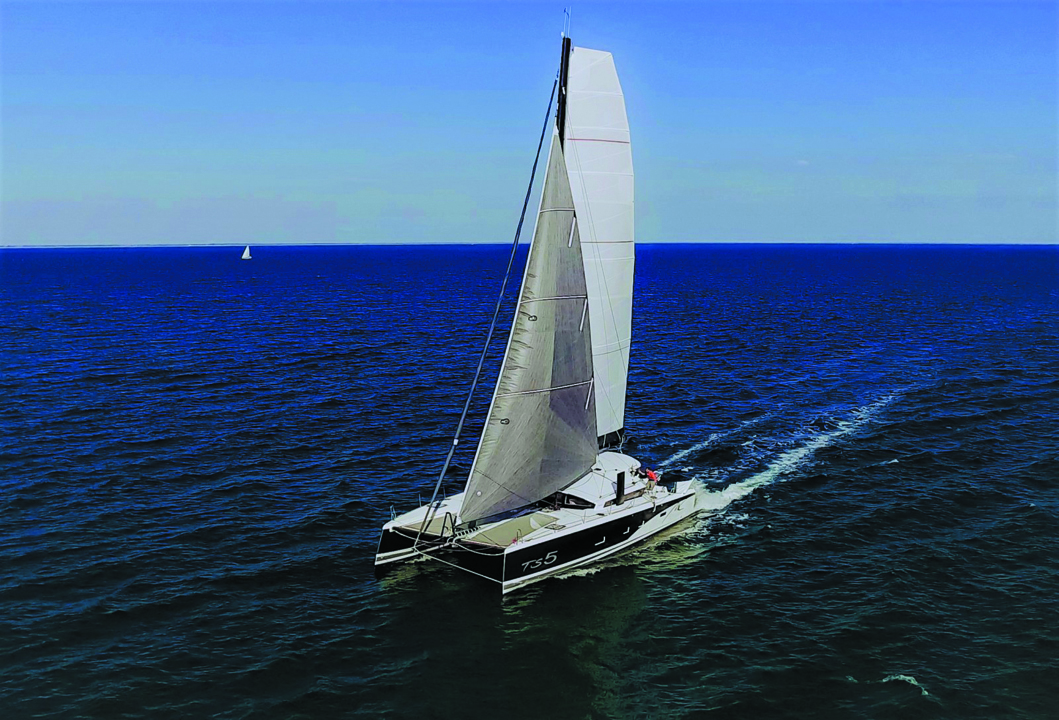 Christophe Barreau likes simplicity, a guarantee of speed and peace of mind, without complex systems or fragile installations. So, in this spirit of happy frugality, he designed the TS5, which nevertheless offers all the necessary comfort. Either 5 double cabins and a saloon-cockpit unit that is very popular today. But it’s only when you place your hand on the tiller, and sit in the bucket seat, that you know if you are right for a TS or not! The quality of construction is impeccable and the weight specifications well-respected. There may be a few less horsepower at the top end of the rev-counter compared to her predecessor, the TS52, but the average speeds are amazing. Other nice surprises include her excellent performance in light airs, the high close-hauled course she can keep, or simply the sensations in medium airs.