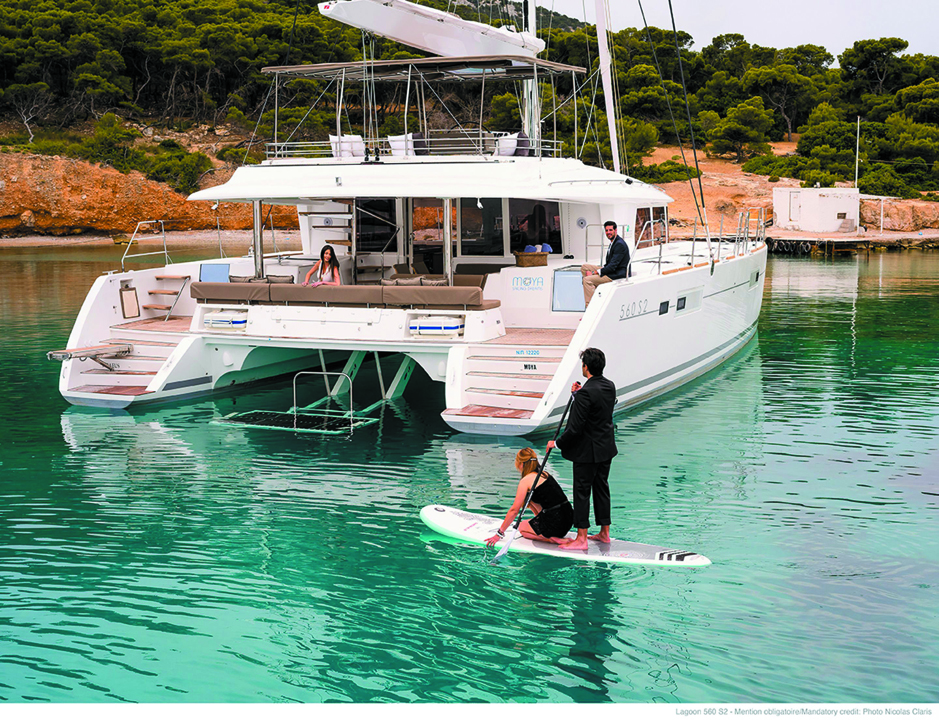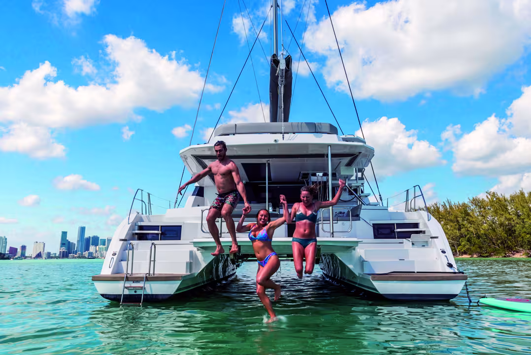 As the flagship of a fleet where the living space is always impressive, the 58 will not disappoint you. While the forward cockpit is now almost traditional, the flybridge's surface area continues to surprise. The saloon is largely open to the outside: as a result, the cockpit becomes a huge platform for water sports. The interior is divided into anywhere from 2 to 6 cabins. Each one is equipped with its own bathroom. This comfortable catamaran is mainly aimed at crewed charter.