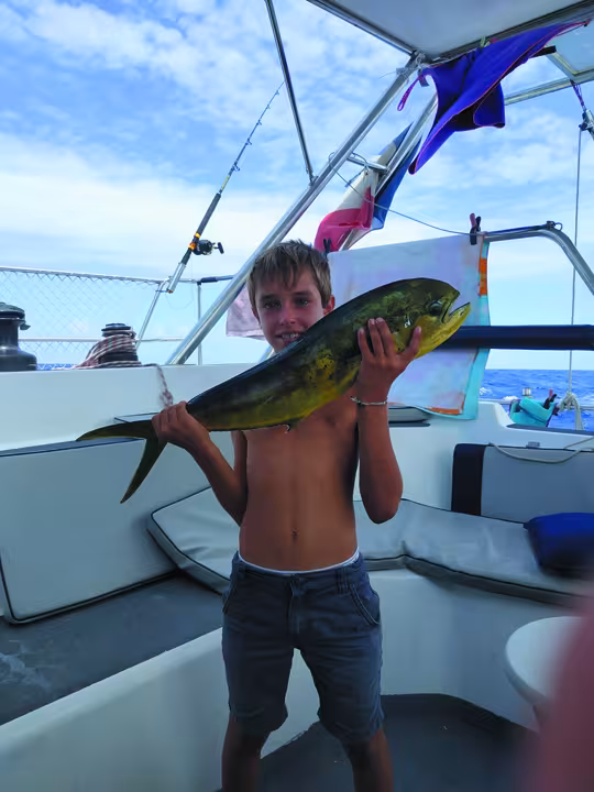 Our children grew up this year. They became our equals, autonomous and gaining in self-confidence. We took it a lot easier on the schooling, as we think that the journey itself is offering them enough different experiences through playing, fishing, swimming, reading and cooking. Mya has read dozens of books. She is interested in everything. Our son is more interested in skipping school, but still seems to have found his feet on this trip. He enjoys sailing, spending time with his dad and especially just being in the water: diving, surfing and snorkeling. Tylio is our fishing specialist. He knows all the species of fish that he can catch. As for Aliyah, she would normally have started first grade this year. She has learnt to swim and to read, just as naturally as when she learnt how to walk five years earlier. The star is the little timid member of the clan. A discreet, naturally pretty little girl with a sweet nature. As far as finances are concerned, on average we have spent €600 per month to live on, and €300 on the boat. That makes €900 per month while sailing. We prepared the boat well before setting off, and so far, haven’t had any unpleasant surprises. However, behind the postcards there have to be some negative sides. A long-haul journey for a mother with children has its challenges. Being together 24/7 means no time for oneself, and the restricted space means that the place is constantly a mess. Nobody clears away their stuff and I spend my days cleaning and washing behind everyone and to be honest it’s spoiling the trip!