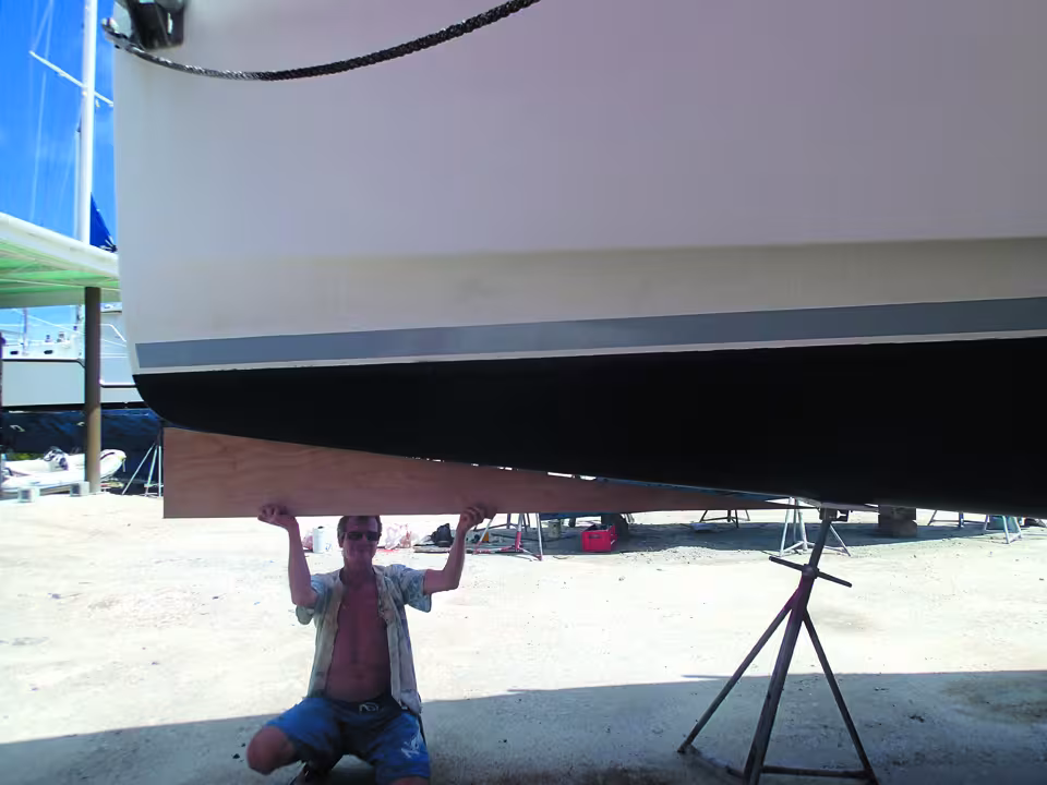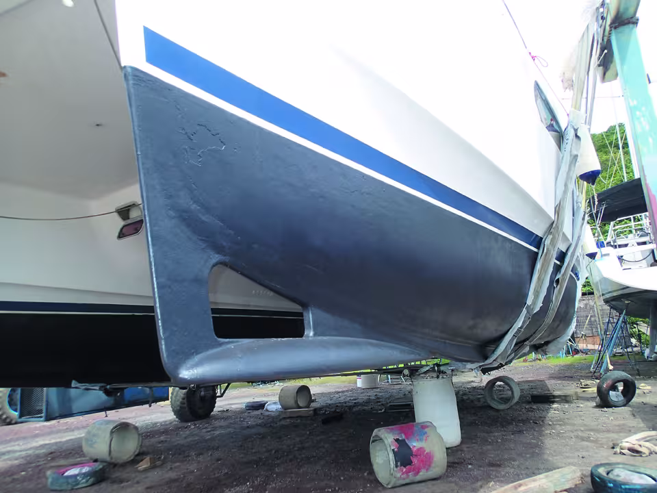 A good part of the maritime passenger transport out of Pointe-à-Pitre is on board fast catamarans which sail around the arc of West Indian islands at speeds of up to 30 knots. These ships are fitted with stabilizers which are designed to limit pitching. These comprise small ram-activated fins and are situated in the bows. When we bought Lady’t Bee, we would never, given the financial constraints, have imagined that our ex-Leopard could be equipped with such a system. However, pitching is definitely an annoying issue and can compromise our comfort at sea, particularly when sailing against the waves. The bow width at the waterline is very narrow, to minimize resistance to the boat’s advance. As it is necessary to have the correct weight distribution to avoid burying the bows, the shipyard has placed a large amount of volume in the higher parts (in other words the deck). As for the stern, it’s a different scenario. Modern hulls have aft sections which can carry a lot of weight. They “stick” to the water without any exaggerated up or down movement. Because of this, in rough seas you end up with the same cycle repeating itself: a wave pushes the back of the boat upwards. As the bow doesn’t have much volume, it drops deep into the water until it hits the larger volume which is situated higher up. Given the pressure, the boat then bobs out like a cork, leading to the longitudinal up and down that we call pitching, and which tends to get into a self-perpetuating cycle. When trying to come up with a way to combat this cycle, I was inspired by the bulbs on cargo ships and the foils on fast catamarans. I therefore designed, experimented and installed the curious-looking half-bulbs that are now on Lady. The results have far exceeded my expectations!