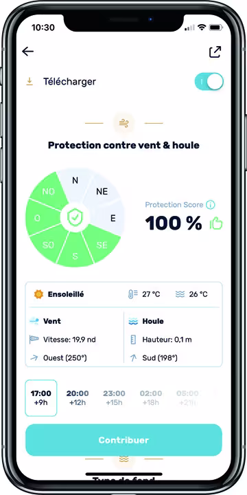 With this new version of the app, Navily sets up an automatic scoring of each anchorage by combining the data shared by the community with the weather forecasts: wind strength, gusts, wind and swell angle, wave heights, etc. The resulting protection score changes over the course of the day, thereby making it possible to know very quickly if an anchorage is suitable for the expected weather conditions. More than 10,000 anchorages are listed in the Navily catalogue.