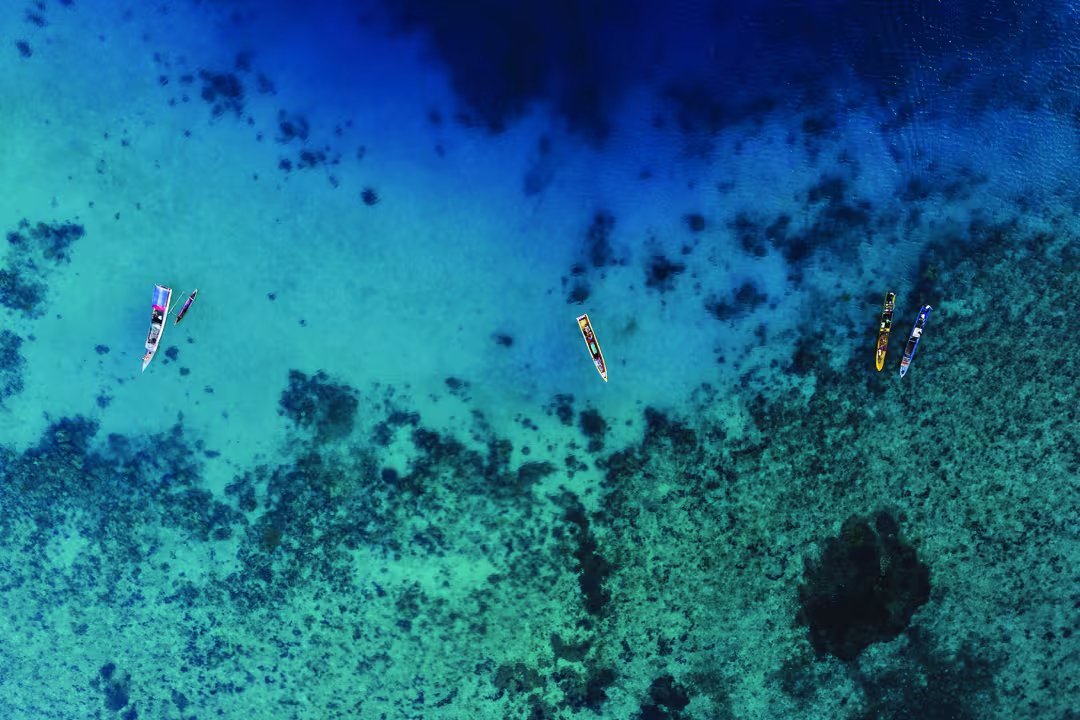 We approached Sada Bay, sailing along the coastline that was most exposed to the swell. The anchorage turned out to be extremely calm - at least once the anchor had been sent down twenty meters (65’). We were around 150-200 meters (450-600’) from the small coral bottleneck where we were supposed to be heading. Only a few boats could anchor there at the same time.
