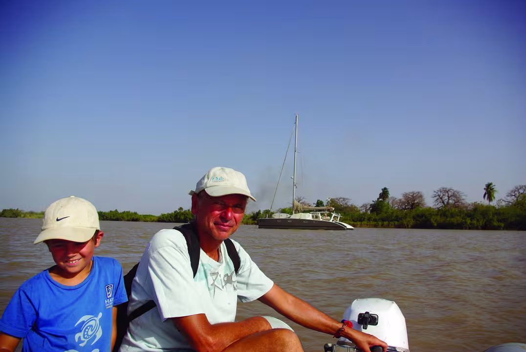 <p>We anchored for a few days in front of Lamine Lodge, run for the last thirty years by Peter, a German who is now quite old. He washed up here on his yacht and the wreck can still be seen next to the lodge! It’s quite a basic place but it is charming and full of… monkeys, who steal the bottles of soda. But not the beer as they don’t like it! It’s a lovely place, but there isn’t much current, so Tim got an initiation in paddle boarding. Now he sets off alone into the mangrove to see the monkeys and the birds. We took almost a week to cover 400km (250 miles) into the hinterland, as far as the Gambian National Park near Georgetown. Sailing isn’t difficult and we were able to do some hit some impressive speeds, as the trade winds had returned. Only the entrances to the creeks were complicated, as the sandbanks aren’t marked - and are in fact invisible. We anchored in front of a lodge at Bintang Creek where the bedrooms were built on stilts in the mangrove, followed by Mankori Creek, totally isolated and surrounded by untamed nature. The noise was impressive, particularly at night, and we didn’t even recognize a quarter of the birds. Finally, we anchored off the village of Kutand Tenga, where Ibrahim accompanied us in a dinghy out to hippopotamus country: we saw around 15 of them, although it is often rather difficult to get too close. On the way back we saw a crocodile (that we had apparently woken up!). The next day we set out on a cart to get some diesel in the village of Kutang. En route we came face to face with a troop of baboons, the little ones hanging onto their mothers’ backs. Our guide managed to communicate with them, and he knew the names of all the 51 baboons that are in that area. Peta, the dominant male, responded when he called. However, it is difficult to get close, and it can be dangerous if you venture into the trees as they have been known to attack. </p>