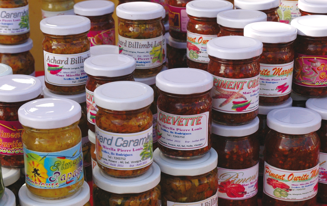 Port-Mathurin’s market is extremely colorful. It’s a pure pleasure to wander around with the sights, sounds and smells assaulting the senses. We did all of our stocking up, with bags in one hand and rupees in the other. Lettuce, tomatoes, cucumbers, carrots, potatoes, cabbage, eggplant, onions, parsley, coriander and thyme, all left our bags groaning. Avocados, bananas, papayas and limes came next. The stalls were full of chilies, ginger, cinnamon and vanilla. We tasted some of the local coconut cakes. Wealso tried the ourite (octopus), which is dried in the sun and wind on Rodrigues and can be kept for weeks. My other half bought some jars of spicy artisanal achards (sliced and preserved foods) which are a Rodriguan specialty. It wasn’t easy to choose between the hundreds of colored pots, all with their own home-made recipes and each one more tempting than the next. Everything that is available on Rodrigues, whether it be fish, seafood, crustaceans, meat or fruit and vegetables, has an “achards” version. It would take us weeks to try out everything! The local artisans also have to compete with the ubiquitous Mauritian competition.Jérome gave us the address of a mixed-race Chinese, who had a little café on the corner of a road by the port. It was his official supplier of sausages, produced in his back room (maybe don’t ask for any details…), and then dried up on the roof by the reliable Trade Winds. There were a few basic tables, some wooden chairs and a counter. Just behind was a butcher’s block and a frightening looking meat grinder which the landlord worked skillfully, right to the edge of his knuckles. I ordered sausage sandwiches that were made to order, topped with dried meat and sweet and sour sauce. It was all encased in a one-size-fits-all local baguette. This little spot, which seems to be a male preserve is apparently only frequented by genuine Rodriguans. They knock back the local beer which is called “Phoenix”. Our next stop was the “Capitaine”, a little restaurant which sells salads and octopus currys. It was a bit of a change from our diet out at sea!