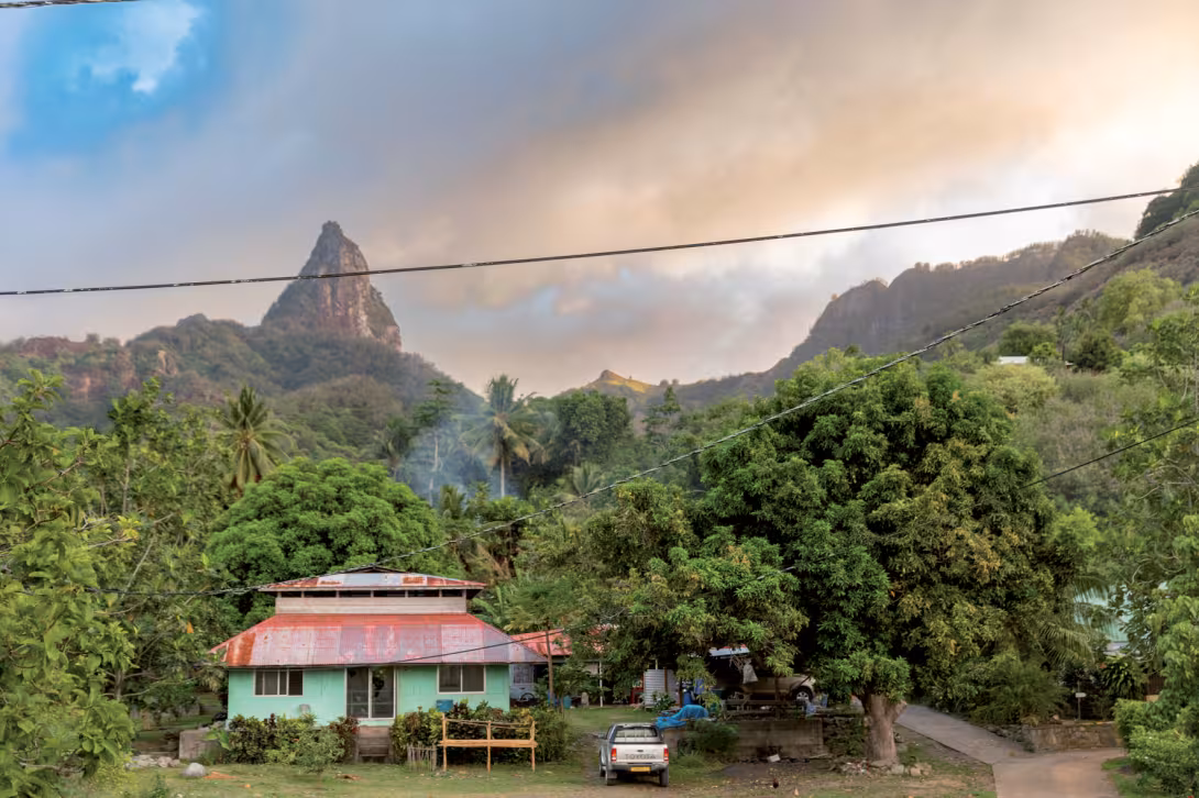 We made landfall in the Baie des Vierges, on Fatu Hiva! The moon allowed us to glimpse a landscape with jagged pitons, which we had dreamt about many times when reading the nautical magazines. In the morning we were really dazzled, the reality is much better than the ‘postcard’ photos. The village of Hanavavae nestles in an enclosed valley, protected by numerous rocky peaks; the nature here is luxuriant, the shades of green of the countless kinds of trees fought for our attention with the high relief, protected by a simple covering of grass. Nature here is generous, coconuts, of course, mangos, breadfruit, papayas, lemons, enormous juicy grapefruit, goats and wild pigs. And the Marquesans are like this nature: Jean-Pierre and Lea welcomed us simply and took us to visit their island, with much kindness. I had been dreaming of this for twenty years. Every morning, the manta rays offered us an unreal dance, in the evening the sunsets were breath-taking, and during the day, walks and gathering fruit. We left for Hiva Oa. At Atuona, civilization caught up with us: cars, lots of Polynesians bustling about, especially as the supply boat had passed the previous day. Yet Gauguin and Brel settled here. We then headed to Ua Pou, further north.