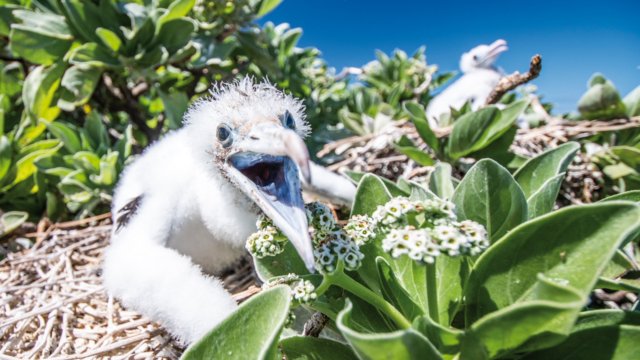 The sky was dark with birds: gannets, noddys, sterns and frigatebirds live side by side amidst a cacophany of strident cries and a heady aroma of guano. All the big guns are out. Cameras and drones are ready to start shooting. Despite wanting to have a sleep, I take a quick dip in the water to see what will be waiting for us. I wasn’t disappointed: there was an unbelievable variety of fish, as well as healthy-looking corals. The sand was littered with sea cucumbers, which play an important role in the marine ecosystem, filtering particles out of the water.