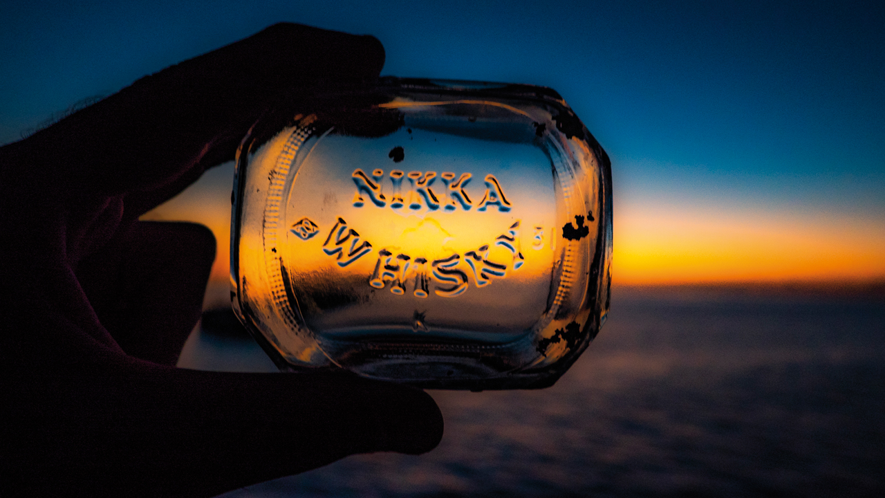 The beach is just as lovely as the other islets. I spot a different-looking rock sticking out of the sand. I dug a little to uncover it completely and realized that it wasn’t a rock but brick. A few years previously, my parents and I had met a couple in Venezuela who had discovered a 16th century shipwreck. They explained that the ships used to be ballasted with rectangular bricks. This seemed to make sense when looking at the lovely brick in my hands. Getting excited, we started to root around the stones buried in the sand… One, two, three bricks. It looked as though we had found a wreck. A few pieces of rusted metal and some very old whale bones. We thought about how the wreck could have ended up on this desert island, and what its story was. The general feeling was that it was probably a whaling ship from the end of the 19th century. We had heard stories of people finding bottles of Japanese whisky, a common drink on the boats of that time. And I did indeed find the bottom of a square bottle with a clear inscription: NIKKA WHISKY, where the boat went down. It was indeed a bottle of 19th century Japanese whisky. This time we really were finding treasures!