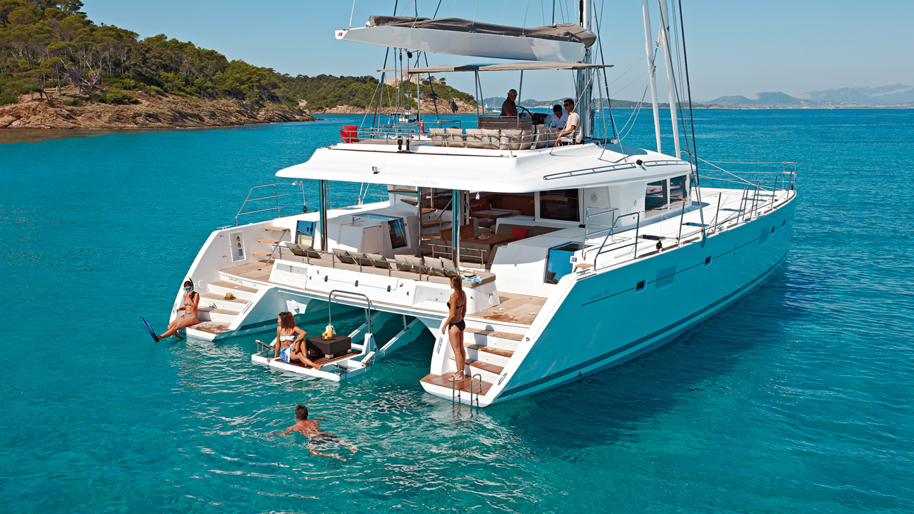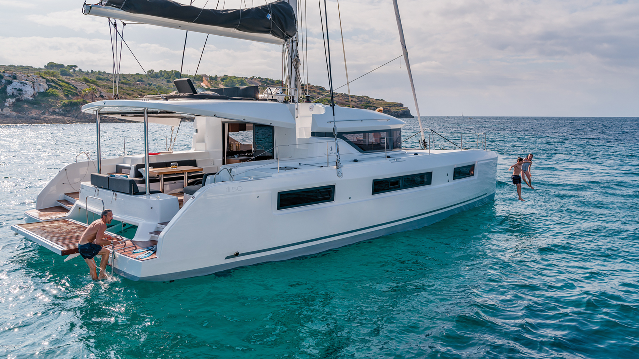 Four years already and the Lagoon 560 hasn’t aged a bit. No doubt because this little superyacht was designed by the trinity of VPLP, Le Quément and Nauta. It really impresses with the volume offered by the layouts. The aft cabins which offer private access to their respective sugarscoops always cause a sensation. But the outdoor spaces are not forgotten with a forward cockpit one of the most comfortable flybridges there is.