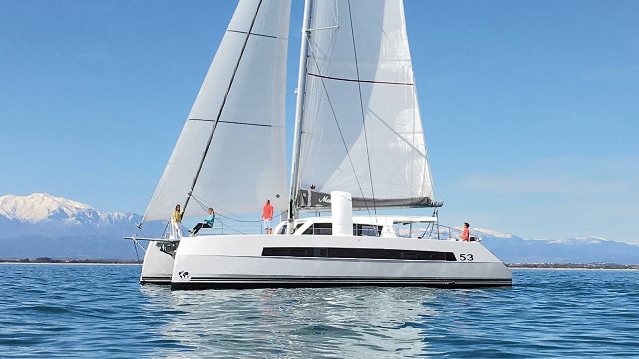 The Catana 53 marks the return of this iconic brand of blue water performance cruisers. The nacelle extends a little longer than on previous models, offering a much larger floor area than the separate saloon / cockpit spaces. However, the hulls remain relatively slender, and as for the daggerboards, they are curved to increase their efficiency.