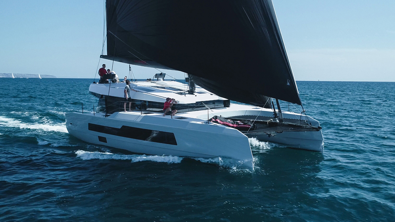For their first collaboration with the Mediterranean shipyard, VPLP really hit the mark! Associated with Patrick le Quément for the exterior lines and Darnet Design for the layout, they have come up with a catamaran with potentially incompatible characteristics: exceptional performance, comfort and space to accommodate a large family around the world, and all remaining manageable without a professional crew.