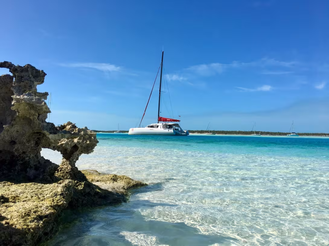 Ah, we left you behind. Two catamarans, Canadian and American, which we just overtook at sea a couple hours ago, in turn enter the bay where we’re anchored in the Exumas. The applause has already started, and again we have to go and do the beautiful routine. It's really tough!!!